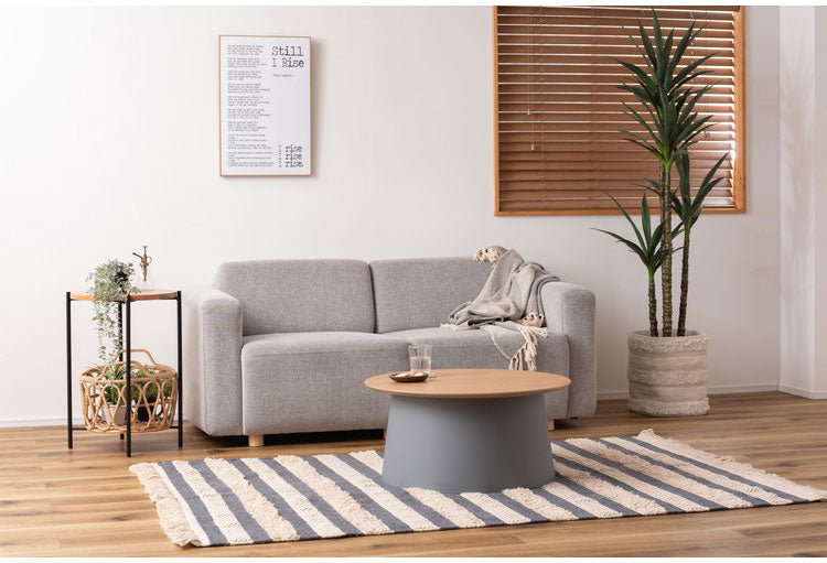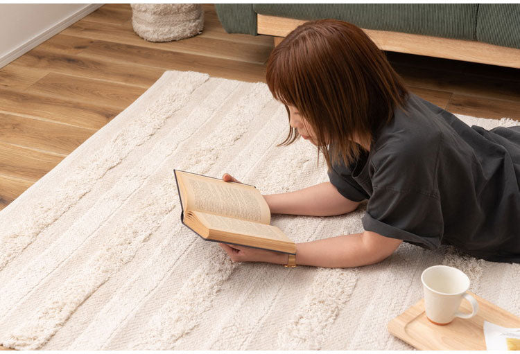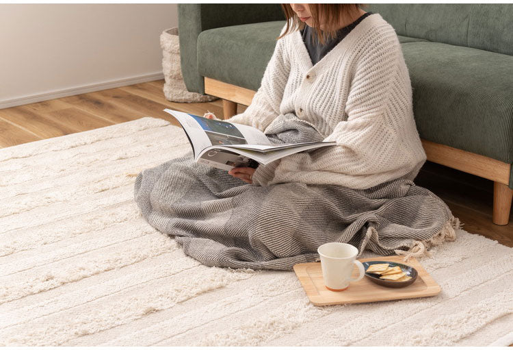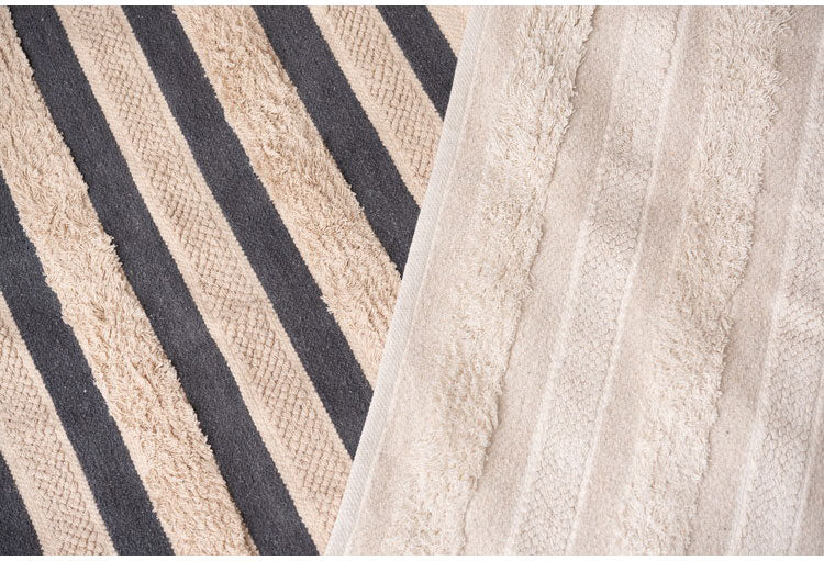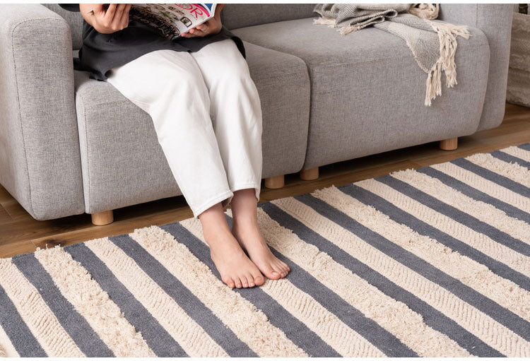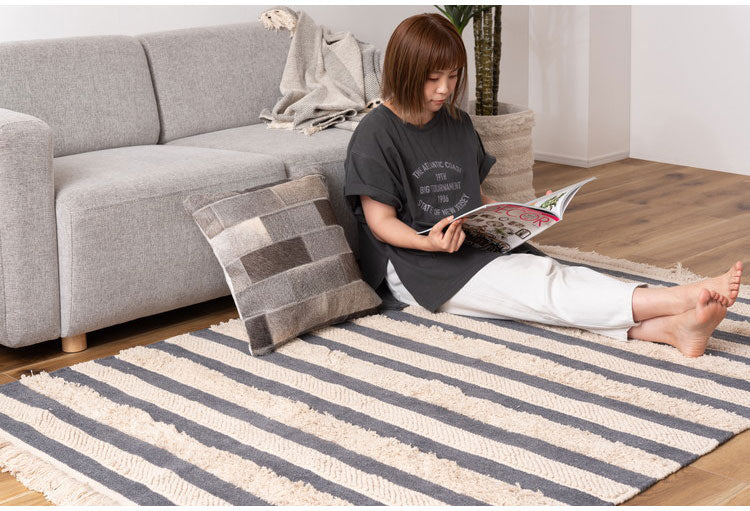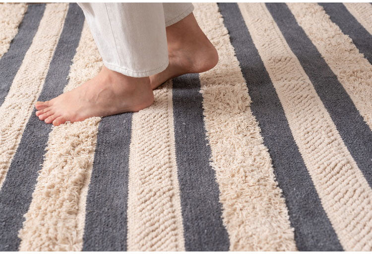 織り方を変えて表現された太目のストライプは優しいお部屋のインテリアを演出します。
