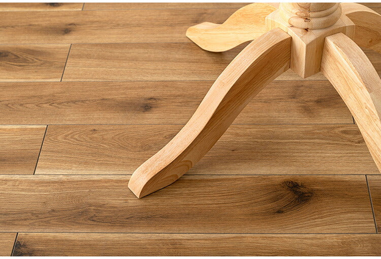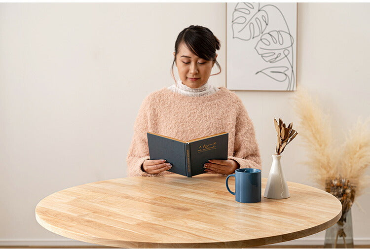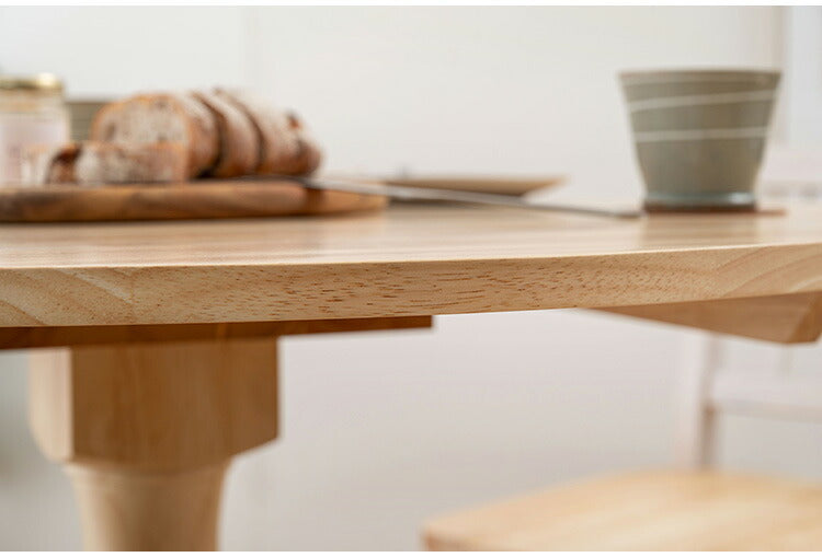 個性的な木目や、素材感を活かしたクリアな仕上げは、豊かな表情を生みやさしい曲線と、カフェテーブルのような一本脚が特徴的なダイニングテーブルは、インテリア性が高く、品のある空間を演出します。