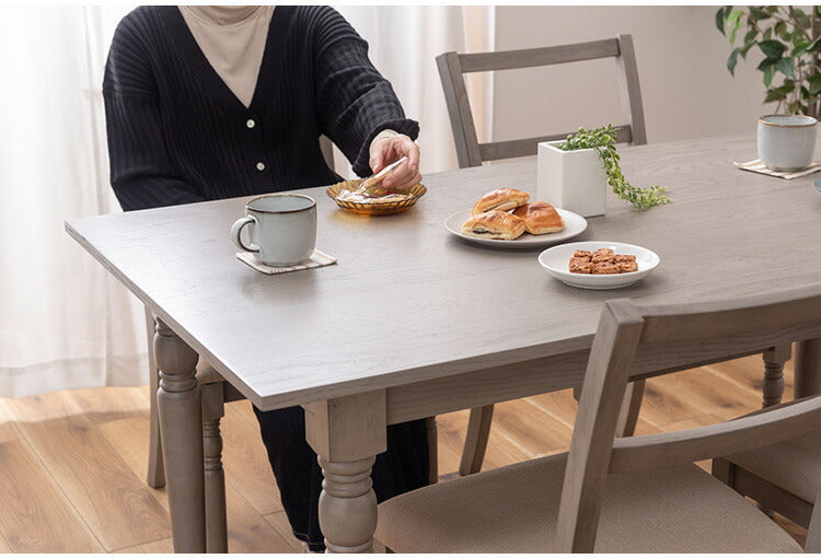 ダイニングテーブル 幅150cm 奥行80cmアンティーク ターンドレッグ アッシュ ラバーウッド 長方形 四角 天然木 木製 ブラウン グレー クラシック シャビーシック 食卓机 おしゃれ 北欧 ダイニング(代引不可)