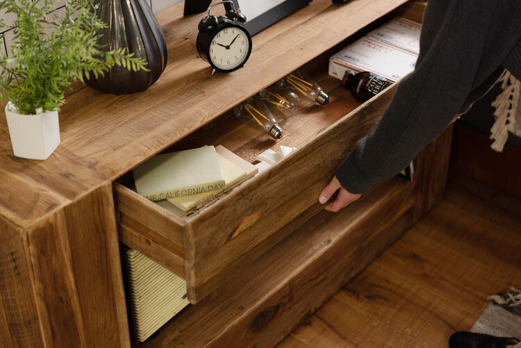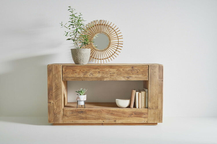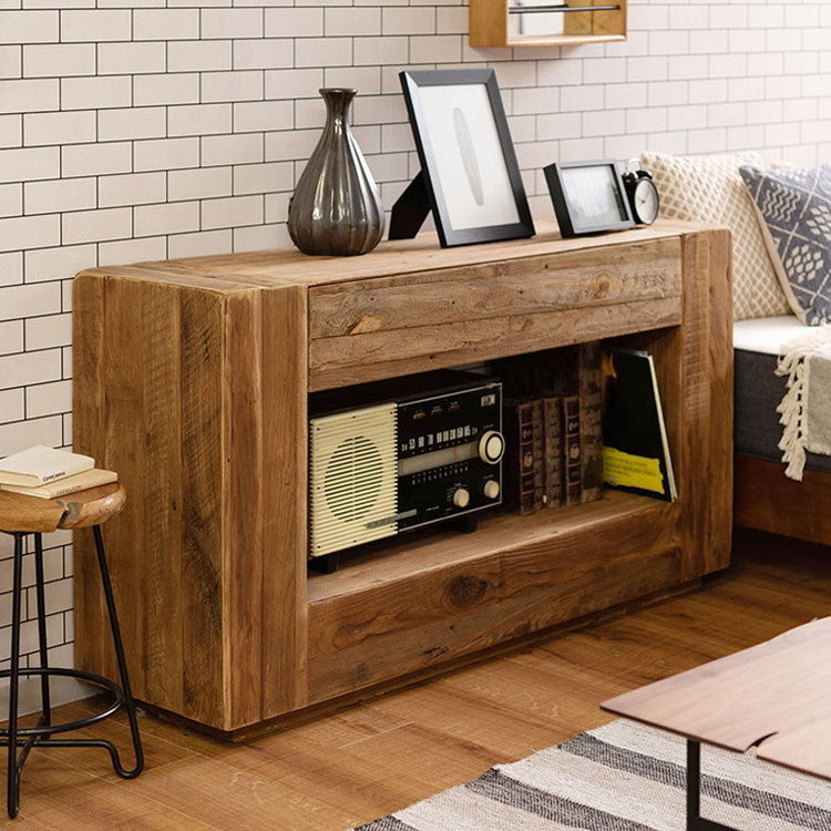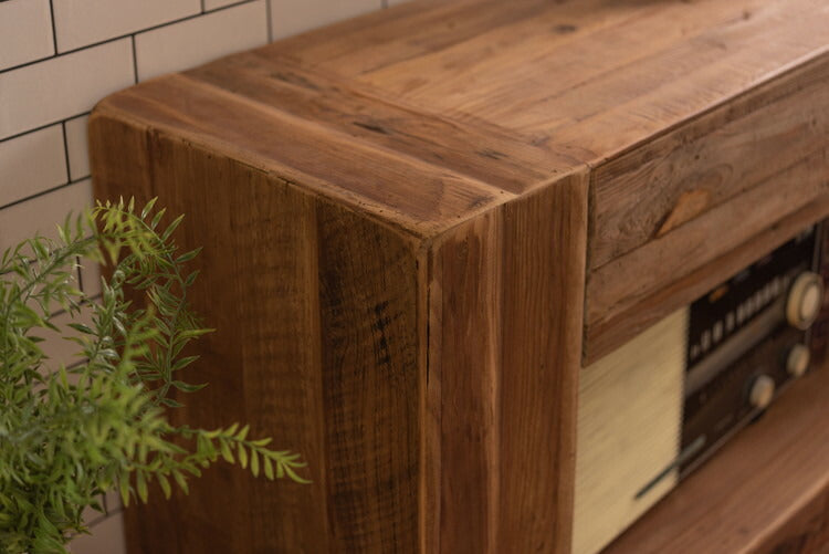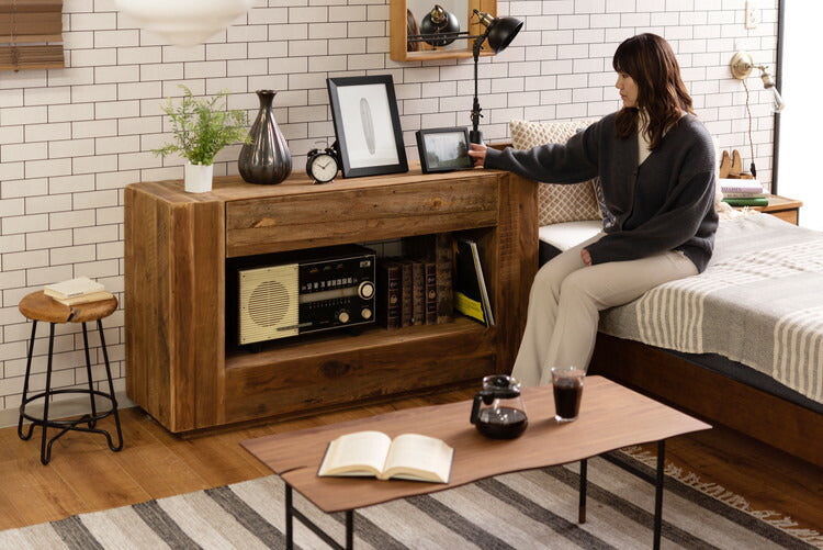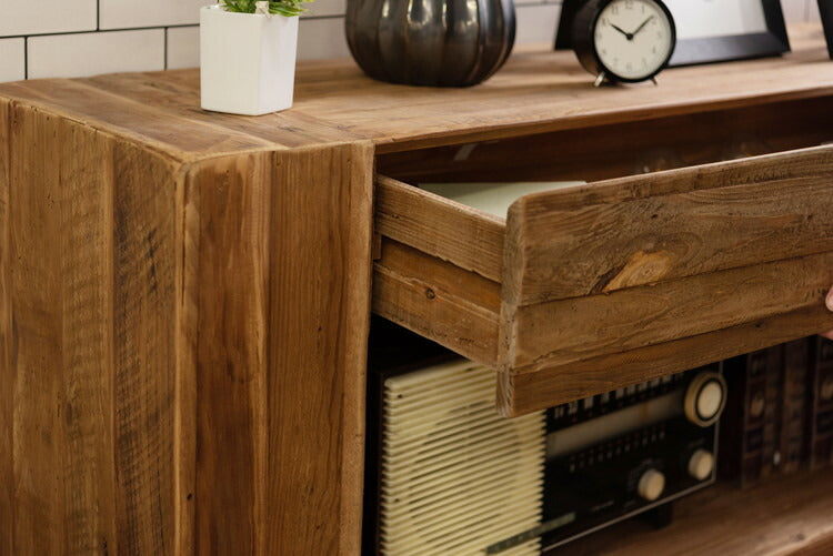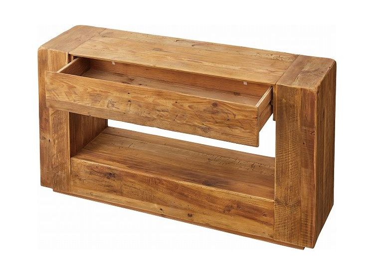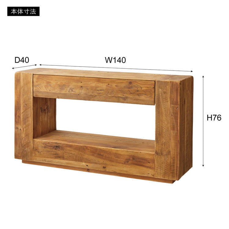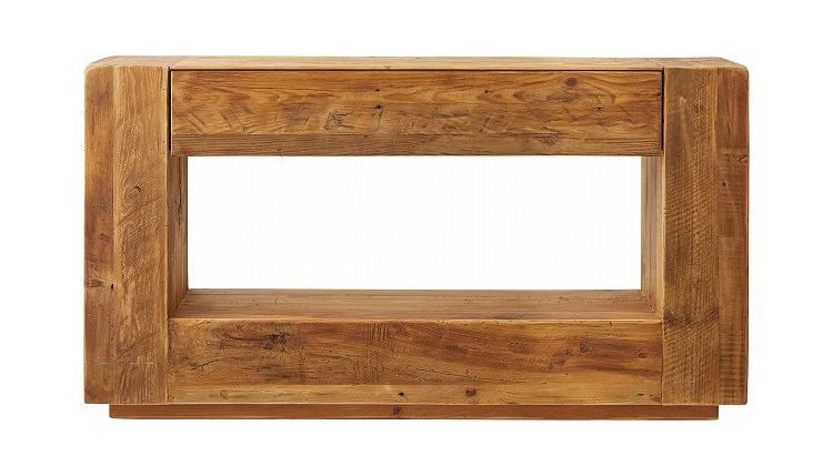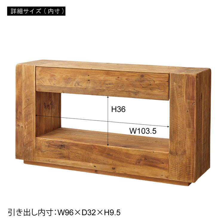 コンソール パイン古材 ラック 収納 ディスプレイ コレクション 引き出し付き 古材 天然木 パイン材 ナチュラル 面取り加工(代引不可)
