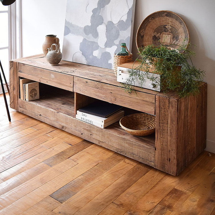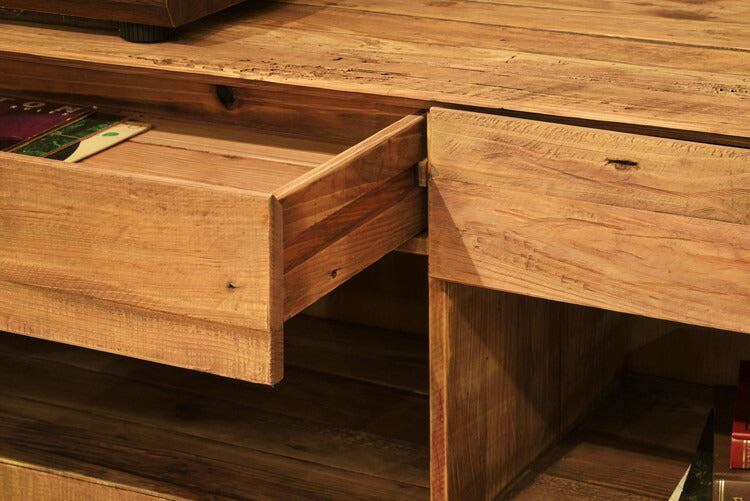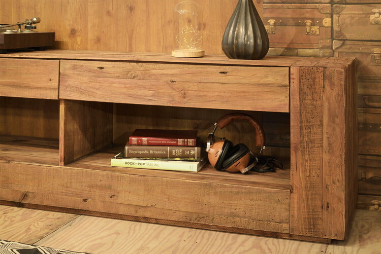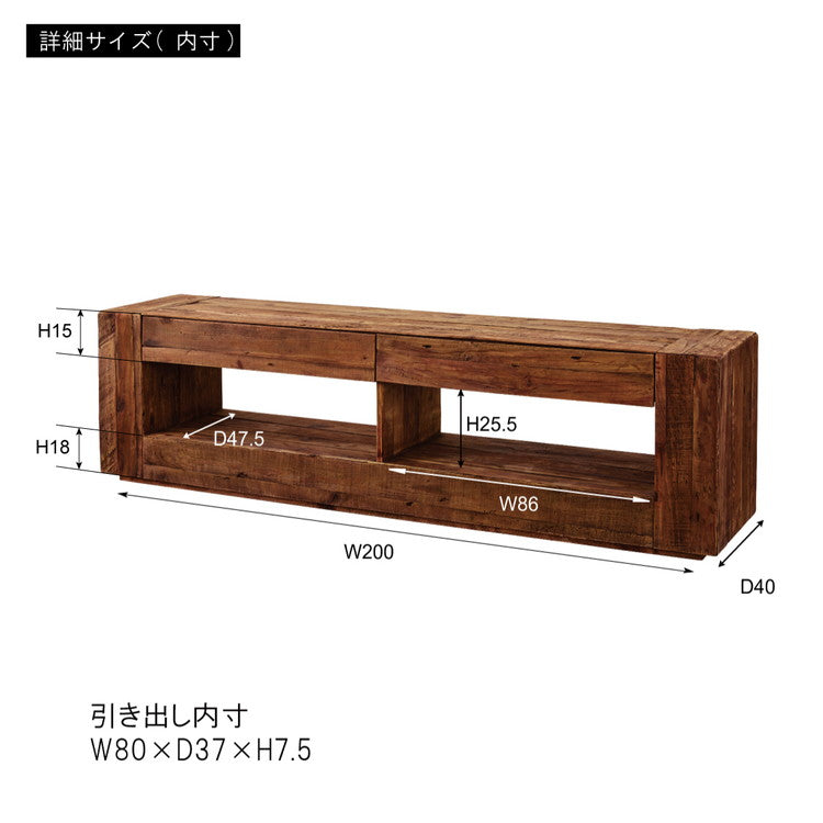 ローボード テレビボード 幅210センチ パイン古材 大型 ワイド テレビ台 AVボード TVラック 北欧 ブラウン ヴィンテージテレビ台 アジアン(代引不可)