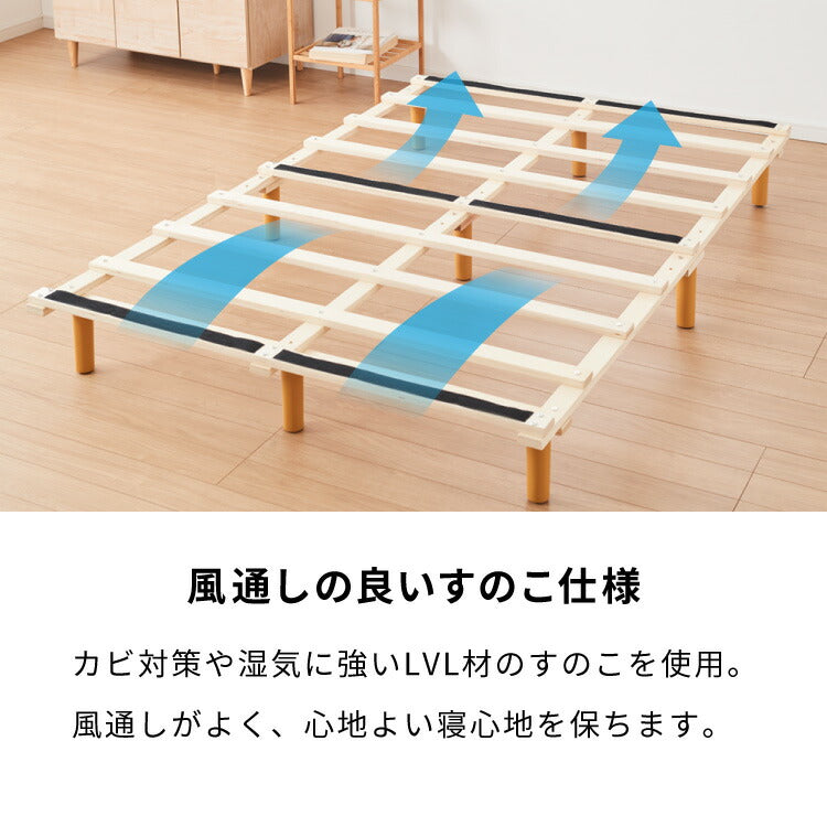 身体をしっかりと面で支え、体圧分散性の高いボンネルコイルマットレスに、耐久性・通気性に優れた単層積層材(LVL材)のすのこ式ベッドをセットして寝心地にこだわりました。