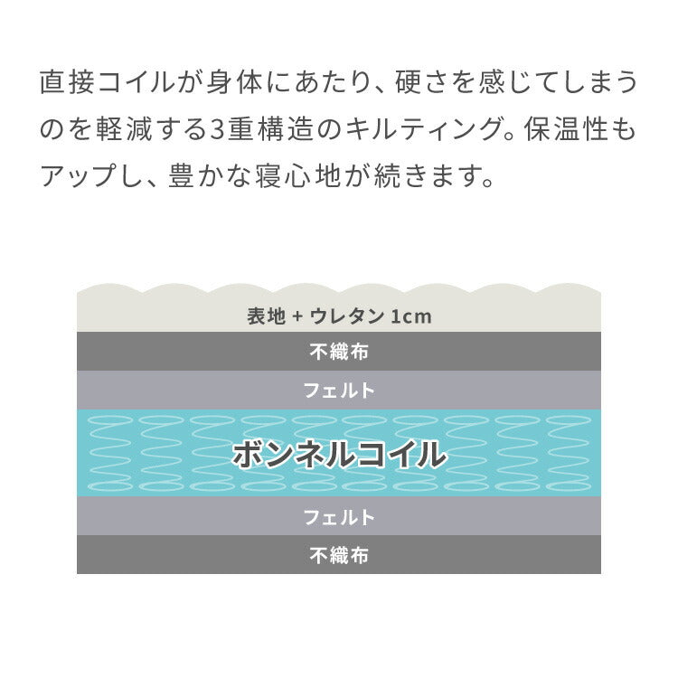 ボンネルコイル マットレス ダブル マット 三つ折り ボンネルマット スプリングマット ベッドマット 3つ折り 折りたたみ ボンネルマット スプリングマットレス 硬め 高品質