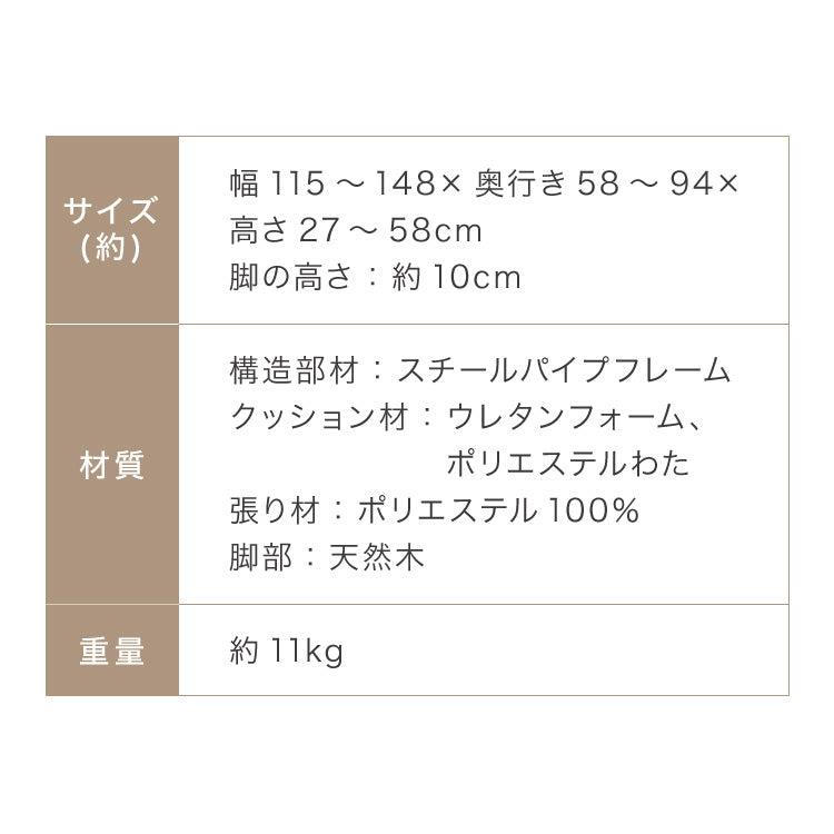 [最大寸法](約)幅115〜148×奥行き58〜94×高さ27〜58cm