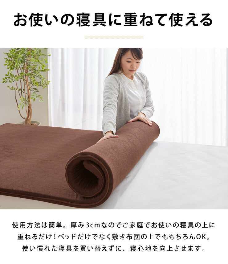 マットレストッパー 高反発25D マットレス トッパー シングル 厚さ3cm フラットタイプ フラット カバー付き ヨガマット ごろ寝マット 190N 洗える ストレッチ カバー マットレスパッド オーバーレイ 寝返り パイル生地 安眠