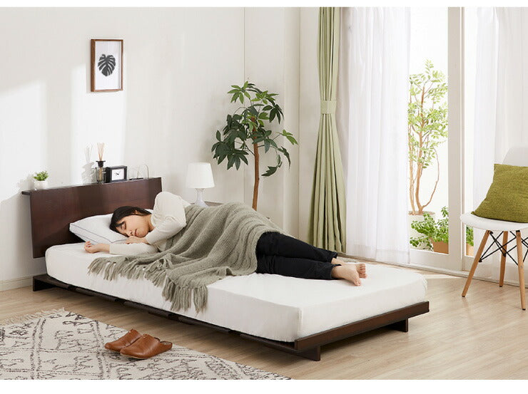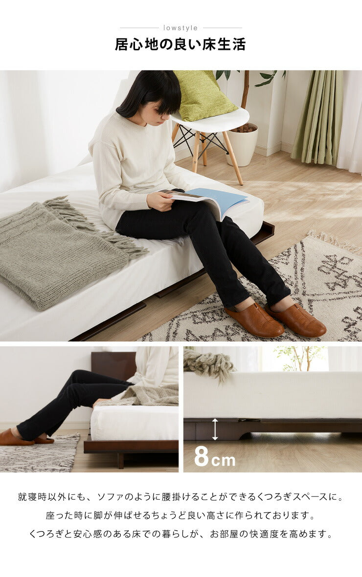 フロアベッド シングル フレームのみ 棚付き コンセント付き 宮棚 ロースタイル 木製 すのこ 北欧 ベッド ローベッド ベッドフレーム すのこベッド ベット