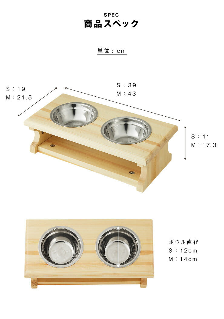 猫用 食器スタンド 木製 ボウル付き 選べるサイズ S M ペット用 猫 ねこ 食器台 餌台 餌入れ 餌皿 フードボウル 天然木 おしゃれ