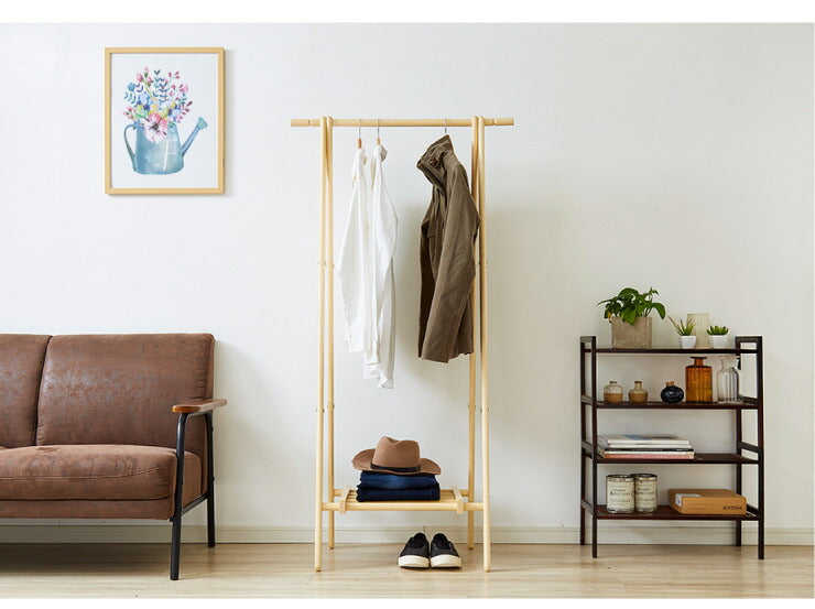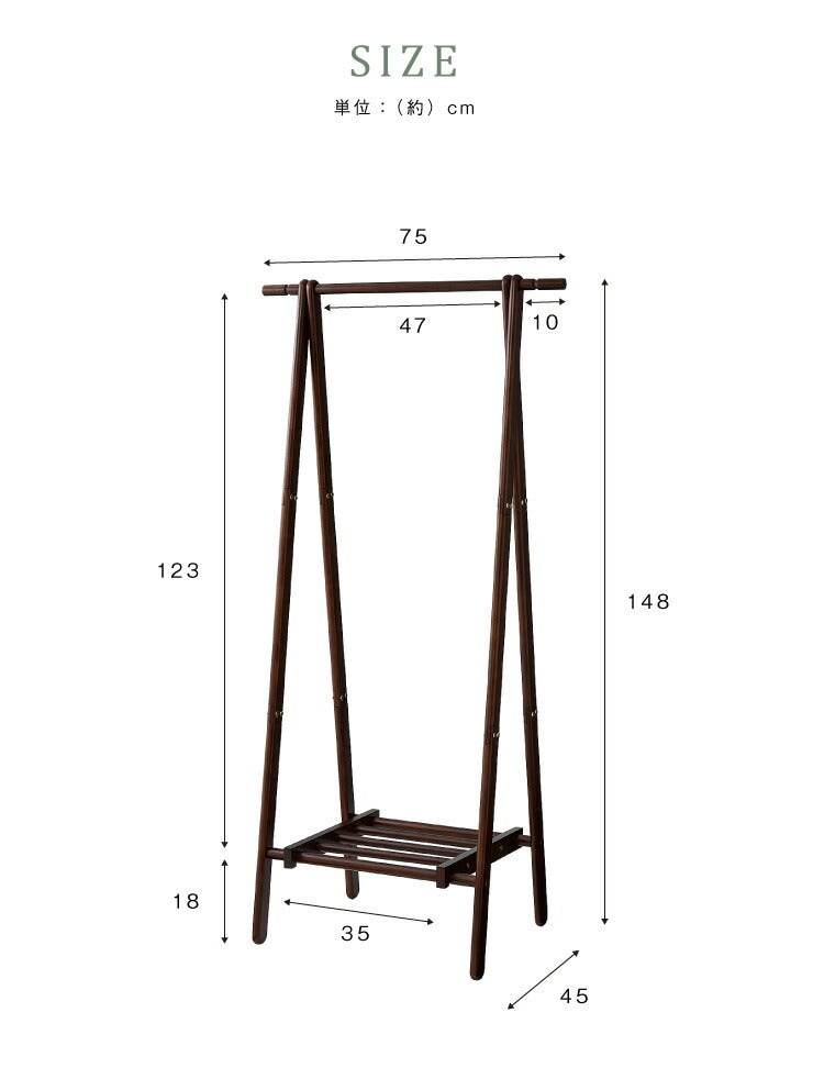天然木 ウッド ハンガーラック 幅75cm 折りたたみ 省スペース コンパクト スリム 棚付き 北欧 ナチュラル 木製 コートハンガー 玄関 収納 おしゃれ家具 衣類 一人暮らし