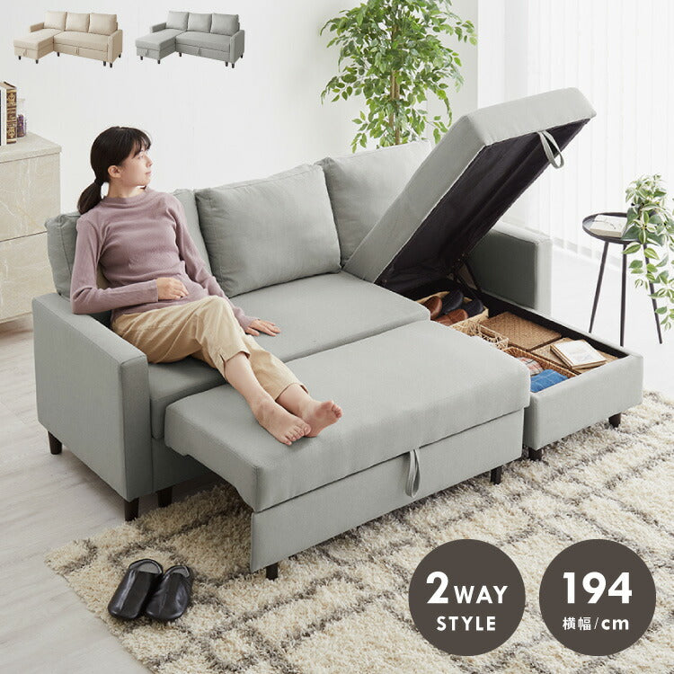 カウチソファ 3人掛け 3P ファブリック おしゃれ 収納 跳ね上げ収納 L字ソファ カウチ ソファベッド ソファーベッド ベッド リビングソファー モダン 北欧 お昼寝 寝れる 折りたたみ 一人暮らし