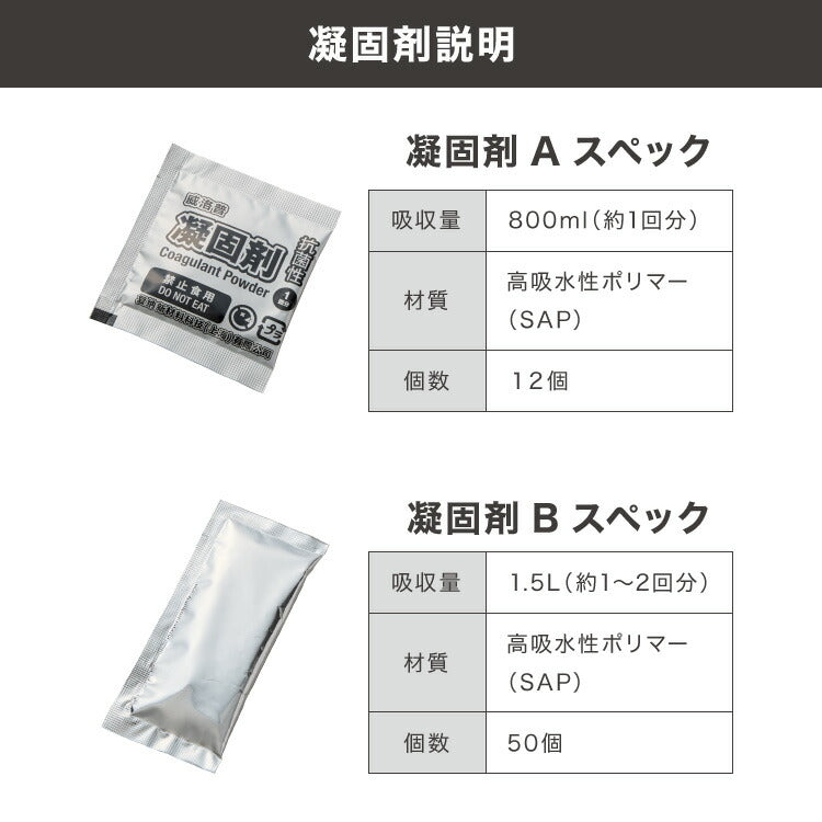 非常用トイレ本体:収納袋×1、ゴミ袋×12、凝固剤×12
