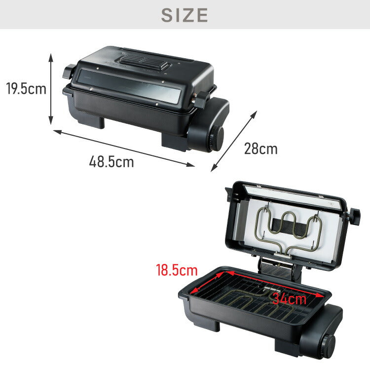 室内BBQ 手入れ簡単 ワイドガラス窓 タイマー付き両面焼きロースター 丸ごと焼ける 網焼き ホット 卓上BBQ フィッシュ マルチ さんま 焼き鳥 焼きナス 黒 ホットグリル 新生活 トースト 焼き芋 もち 反射板 お手入れ 分解 水洗い