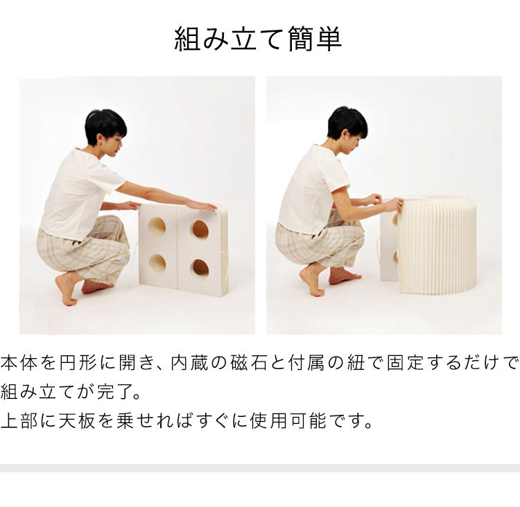 ペーパーテーブル&スツール 3点セット 折りたたみ 円形 天板付 クッション付 紙製 ハニカム構造 耐荷重300kg 撥水加工 クラフト紙 ナチュラル ブラック ホワイト レッド おしゃれ テーブルセット