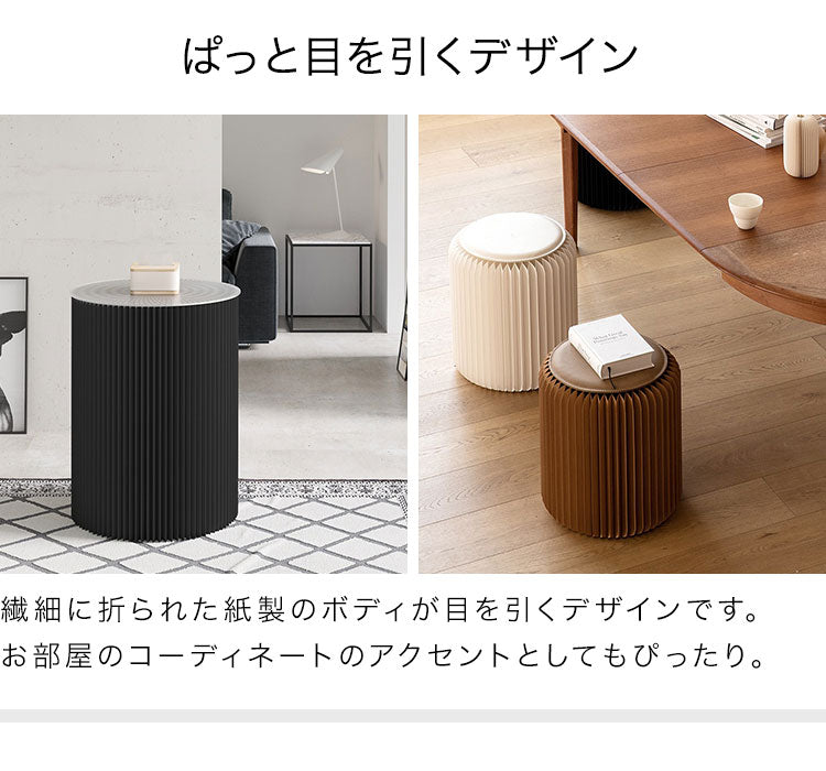 ・繊細に折られた紙製のボディが目を引くテーブルとスツールのセットです
