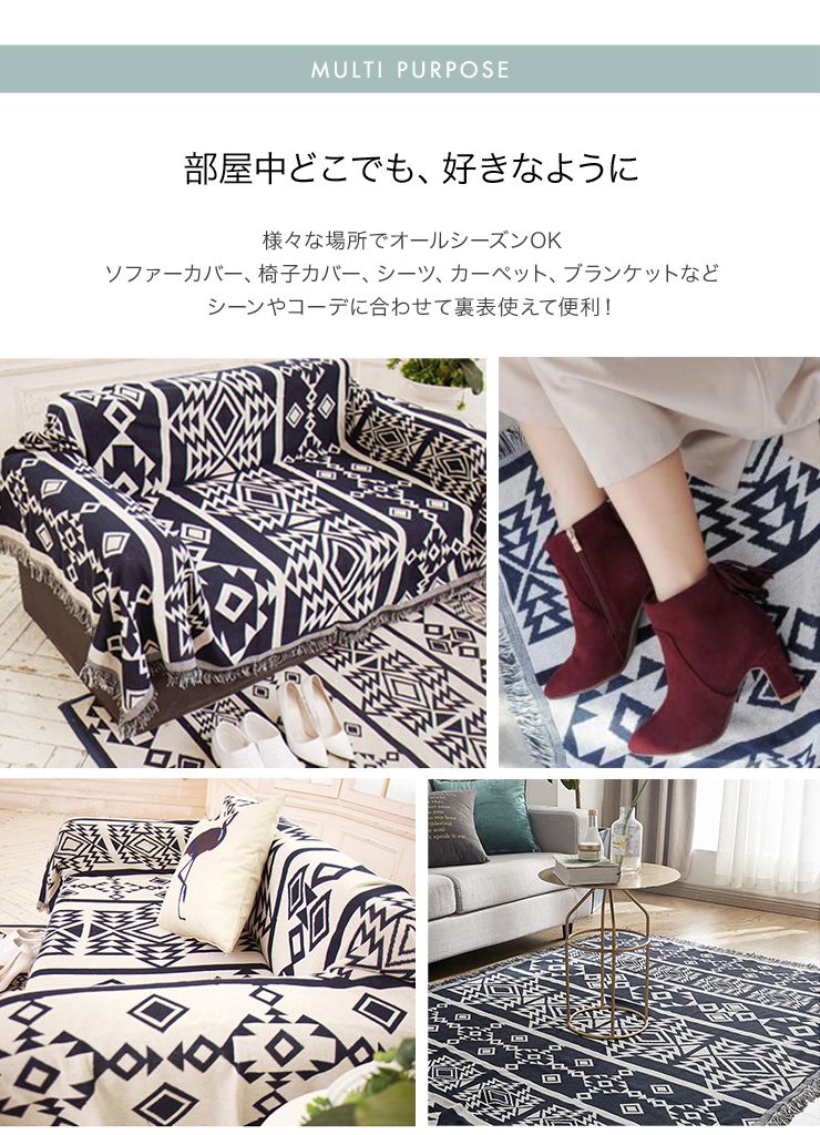 マルチカバー 北欧 130×180cm 長方形 幾何学模様 リバーシブル 両面 洗える ウォッシャブル おしゃれ 2人掛け オールシーズン マルチクロス テーブルクロス ソファカバー ソファーカバー ブランケット ラグ テーブルクロス スロー