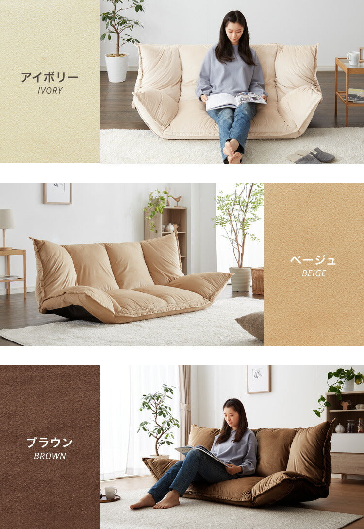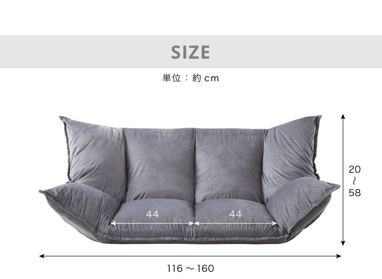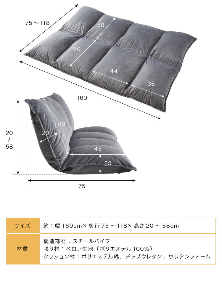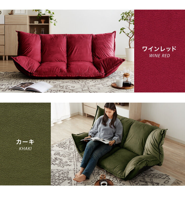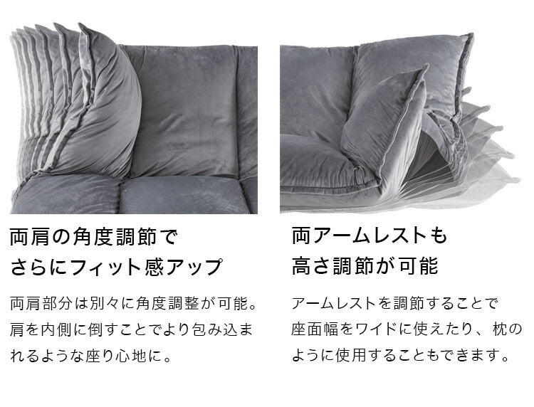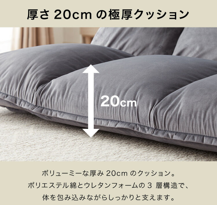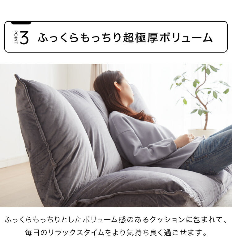 ローソファ 2人掛け 42段階リクライニング ベロア調 極厚 クッション 20cm厚 ふっくら 北欧 シンプル おしゃれ かわいい リクライニングソファ フロアソファー ソファベッド ソファーベッド ごろ寝ソファ リビングソファ