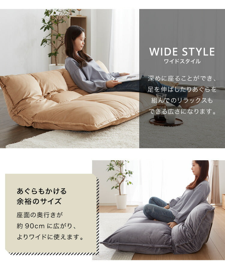 ・6ヶ所 42段階のリクライニングで、まるで特注品のようなフロアソファ