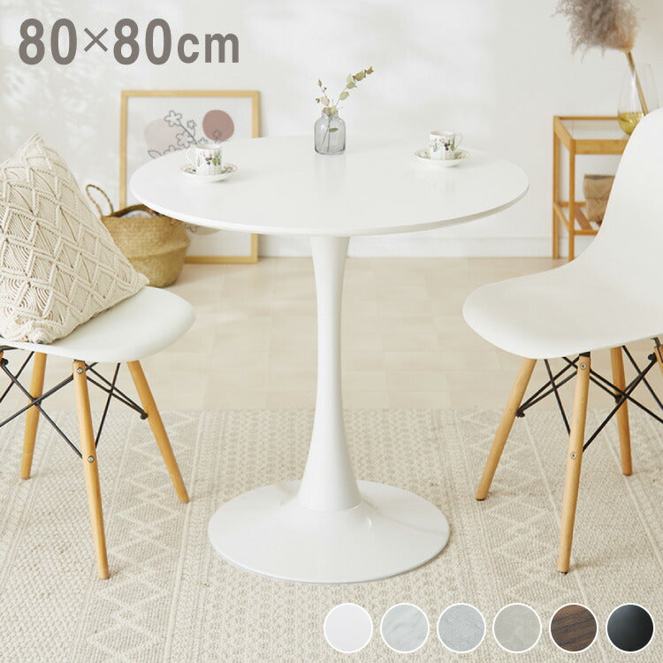 ダイニングテーブル、丸テーブル、白、幅80cm、高さ73cm、幅60cm、組み立て簡単、お手入れ簡単、円形、スチール、MDF、ホワイト、省スペース、コンパクト、2人用、3人用、おしゃれ、北欧、一人暮らし、韓国インテリア、カフェテーブル、韓国、韓国インテリア
