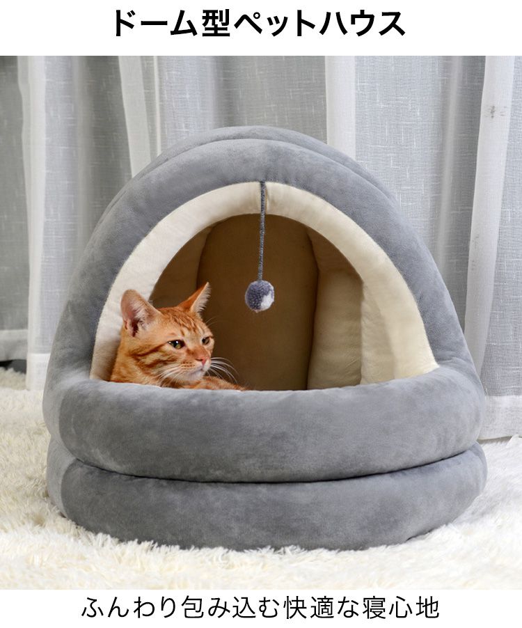 ペットハウス ドーム型 猫 犬 クッション おもちゃ付 洗える ウォッシャブル 寒さ対策 保温 防寒 秋冬 安眠 あったか おしゃれ かわいい ふわふわ ネコ ねこ いぬ ペットベッド キャットハウス 猫ベッド 犬 ペット用品
