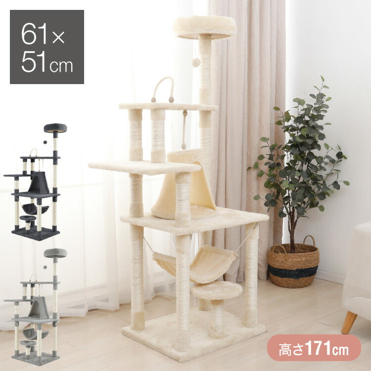 キャットタワー おしゃれ 富士山型ハウス 据え置き 171cm 爪とぎ ハンモック ハウス かわいい 多頭飼い 運動不足 ストレス解消 猫用品 ペット用品 キャットハウス 猫タワー 省スペース