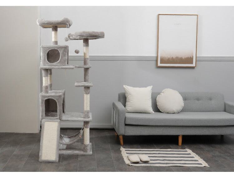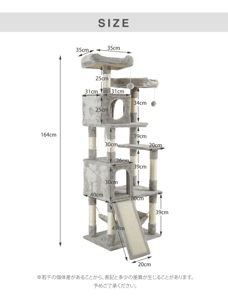 キャットタワー 据え置き 大型 60×40cm 高さ164cm 爪とぎ スロープ ハンモック 隠れ家 おしゃれ 運動不足 ストレス解消 猫用品 ペット用品 キャットハウス 猫タワー おもちゃ 省スペース