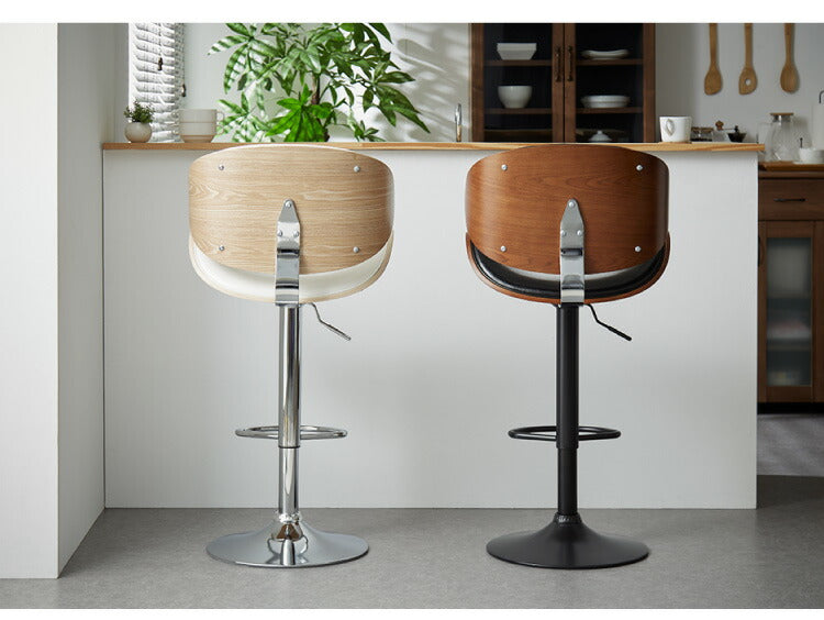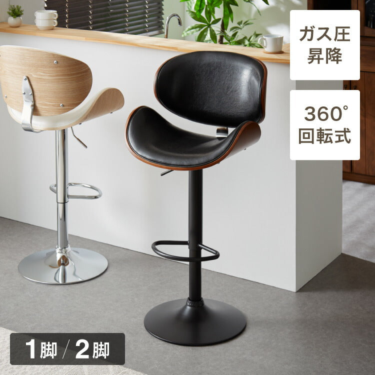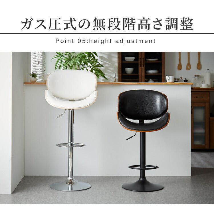 カウンターチェア 背もたれ付き 足置き付き 回転式 昇降式 無段階 木製 PUレザー ブラック ホワイト レザー調 ヴィンテージ カフェ レトロ モダン 北欧 おしゃれ バーチェア ハイチェア チェア イス 椅子 1脚 2脚