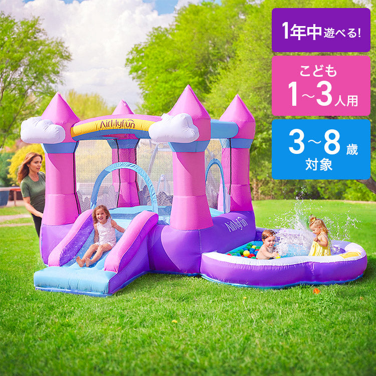 ・スライダー、プール、トランポリン、バスケットゴールと楽しむ仕掛けがたくさんです。