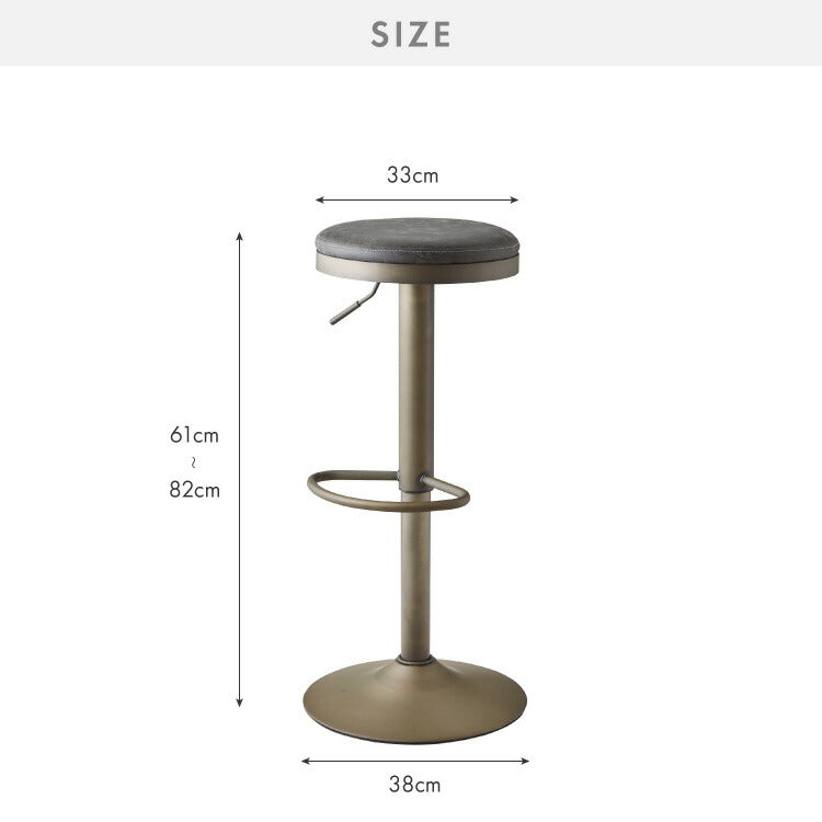 カウンターチェア、ガス圧式、回転式、ガス圧昇降、ガス圧昇降式、高さ調整可能、キッチンスツール、カフェチェア、ヴィンテージ、レザー、レトロ、モダン、椅子、イス、チェア、スツール、ミッドセンチュリー、韓国、北欧、オフィス、店舗、カフェ、ダイニング、高級感、ブラウン、グリーン、ブラック、グレー、カフェスタイル、カフェテイスト、西海岸、パーソナルチェア