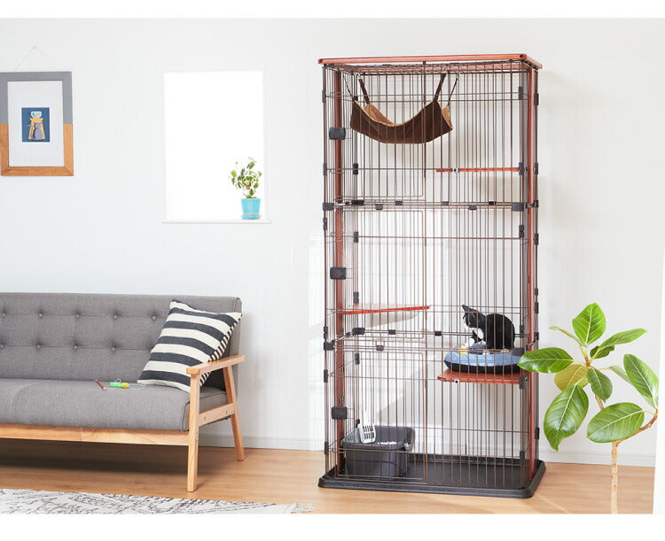 キャットケージ、3段、大型、広々、ゆったり、ペット用品、ペットグッズ、キャット、猫用品、猫ケージ、ケージ、ゲージ、棚板、ステップ、ハンモック、組立簡単、ブラウン、ネコ、猫用、ハウス、脱走防止、留守番、便利、安心、安全、運動不足解消