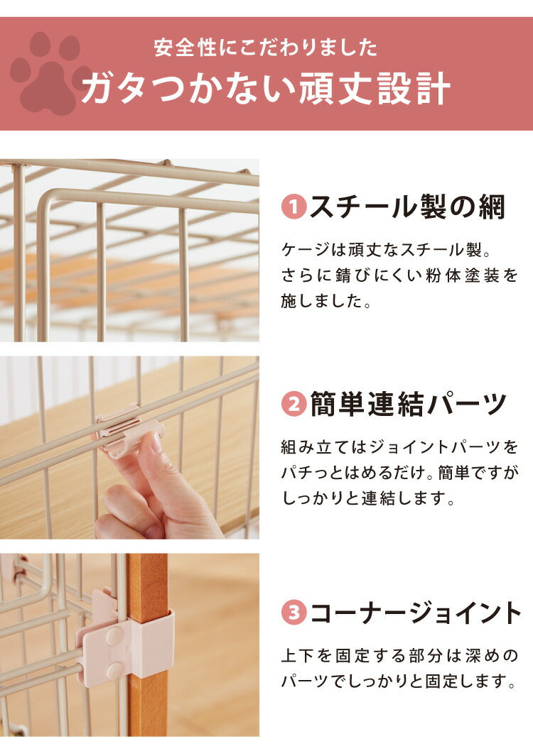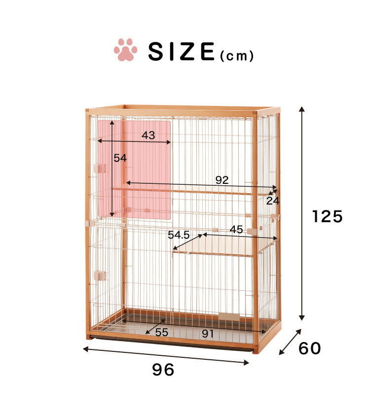 ※ケージ内の棚板には固定ネジが付属しておりますが、場合によっては猫がジャンプした勢いで板が動いてしまう事もございます。棚板が動きやすい場合は、お客様側にて補強をおすすめ致します。