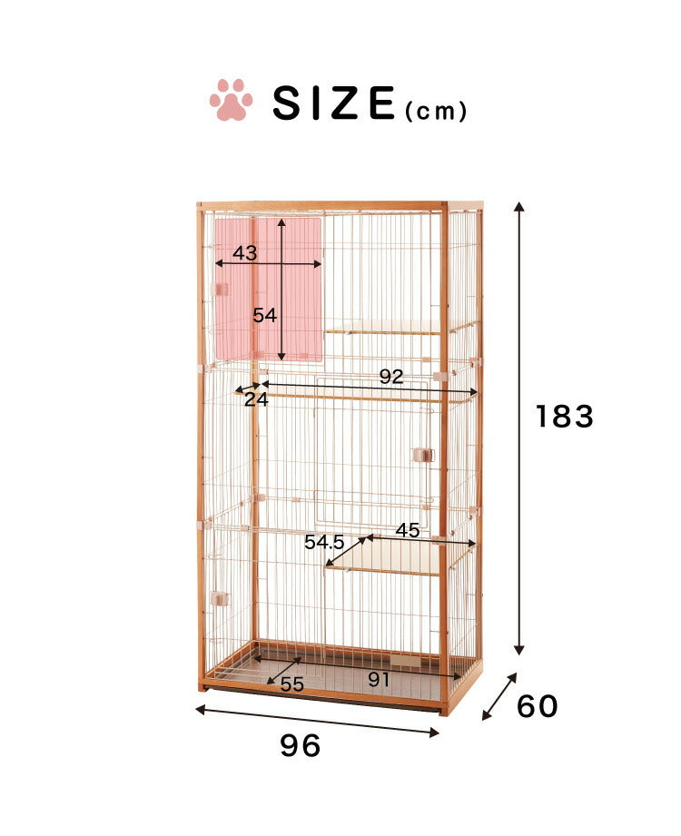 ※ケージ内の棚板には固定ネジが付属しておりますが、場合によっては猫がジャンプした勢いで板が動いてしまう事もございます。棚板が動きやすい場合は、お客様側にて補強をおすすめ致します。