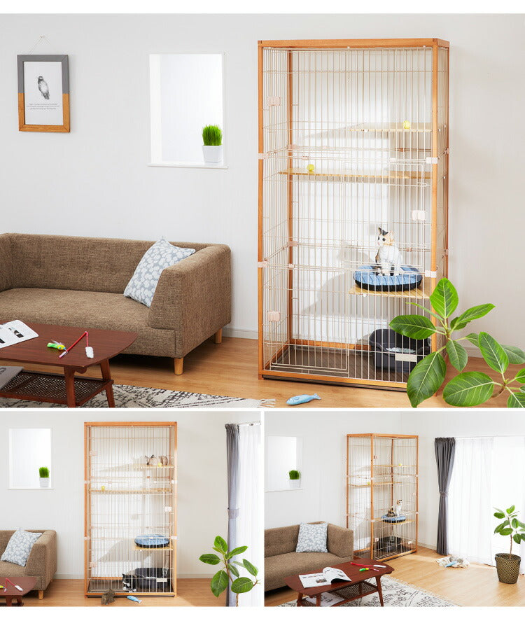猫 ケージ キャットケージ 3段 木製 おしゃれ 木目調 インテリア スリム コンパクト 北欧 広々 大型 猫ゲージ 高級感 キャットハウス ネコ ハウス 多段 留守番 保護 脱走防止 多頭飼い 多頭 スチール