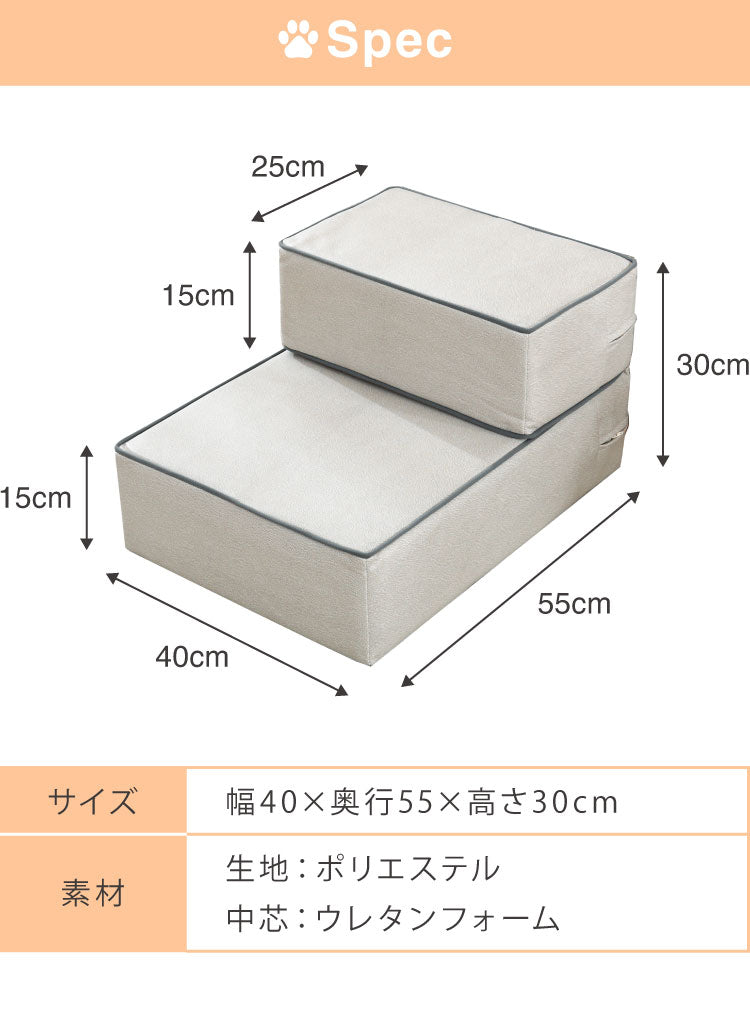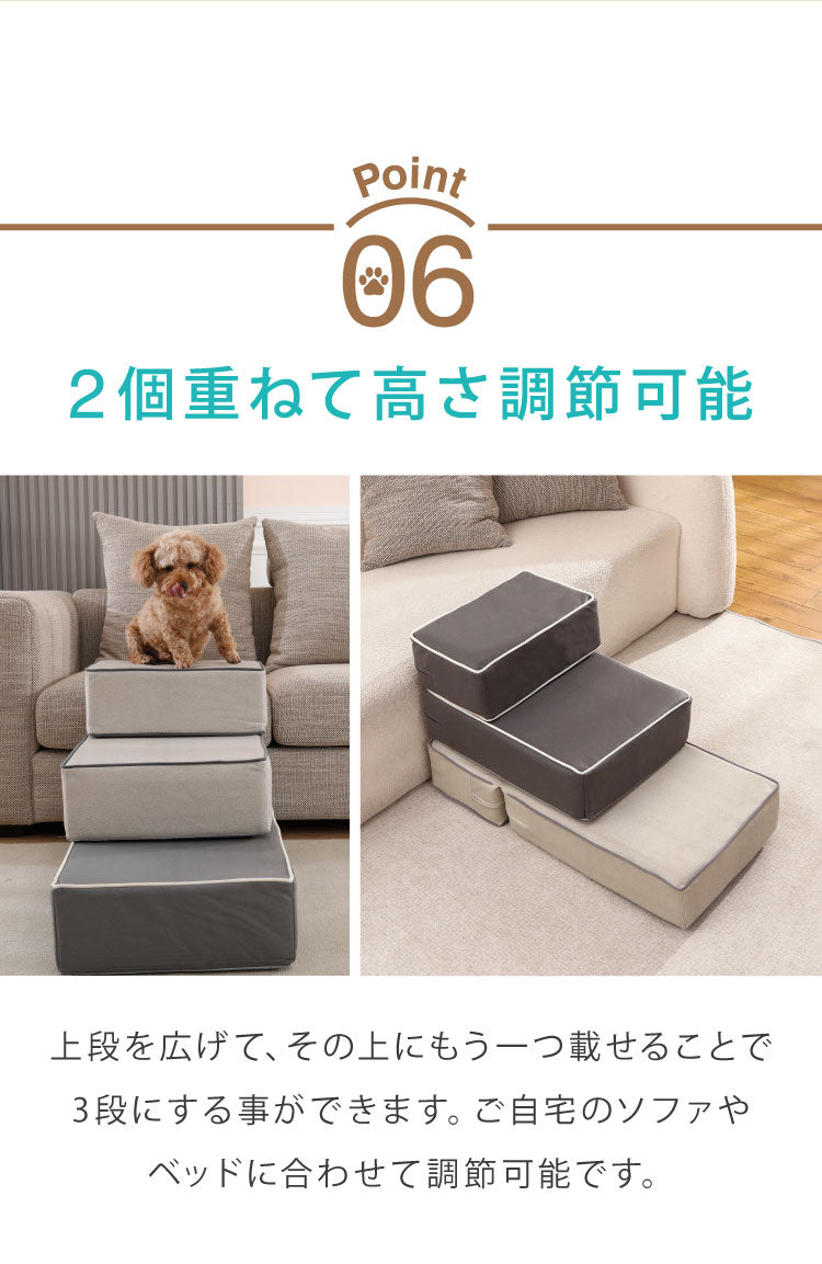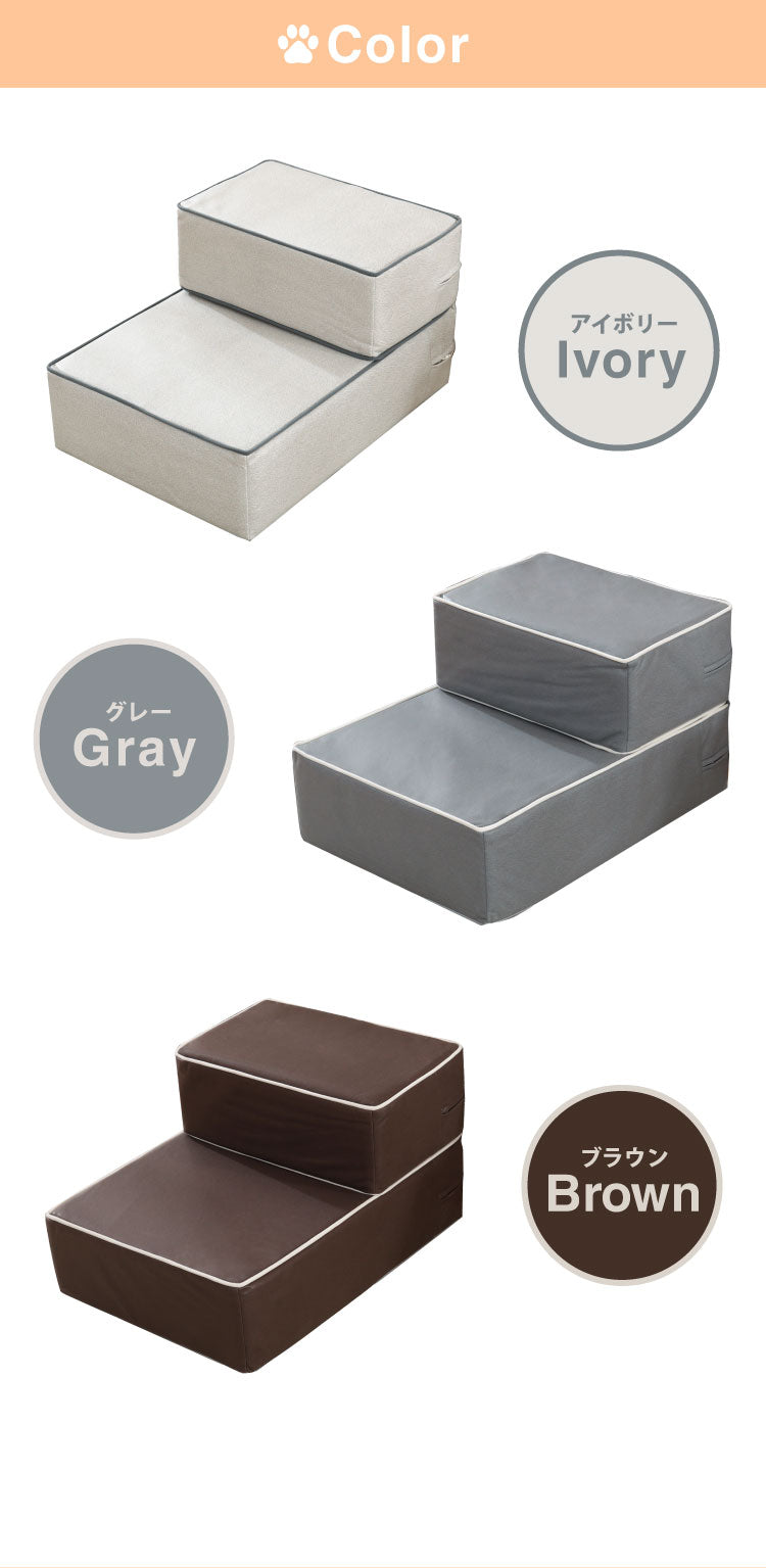 ドッグステップ 2段 硬め カバー 高さ調節 撥水 ブラウン グレー アイボリー カバーリング 手洗い可 北欧 おしゃれ かわいい シンプル ナチュラル ペットステップ 階段 ステップ クッション ステップ