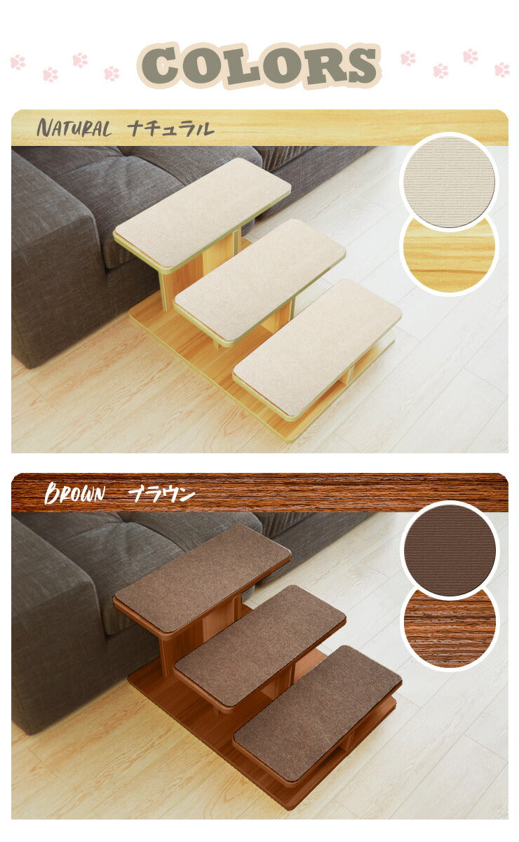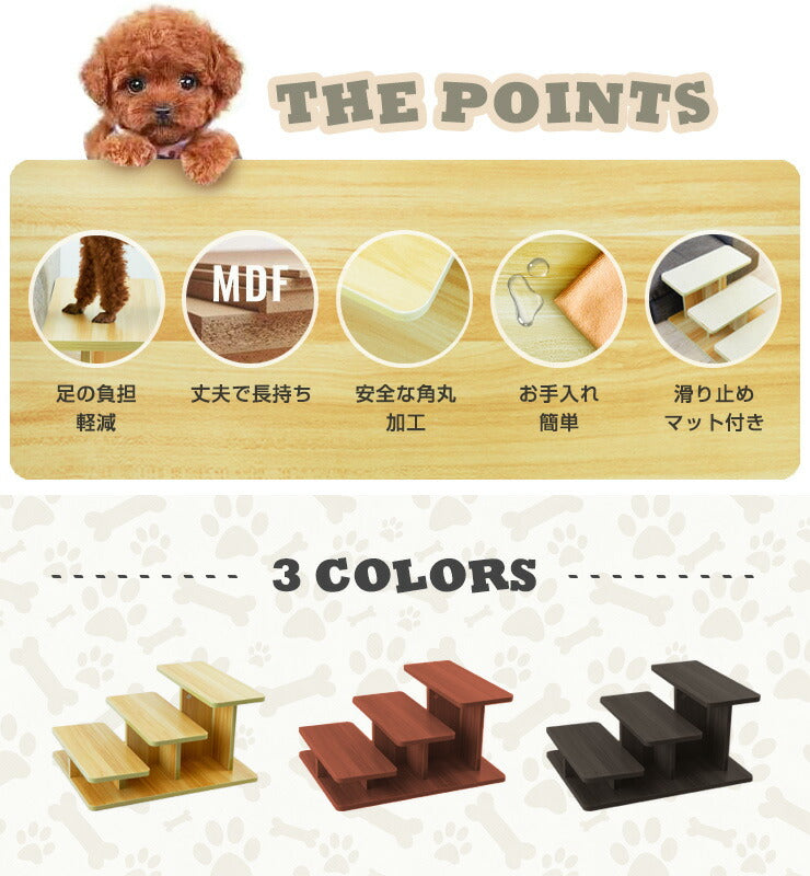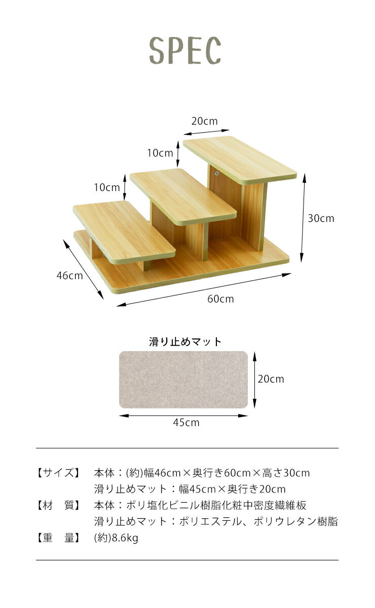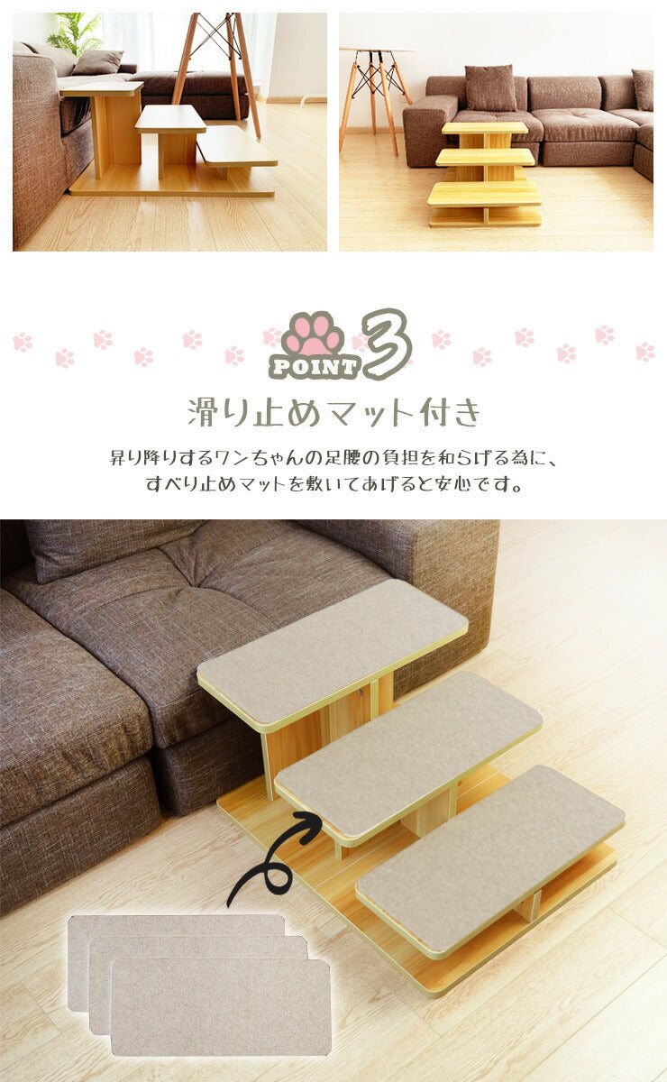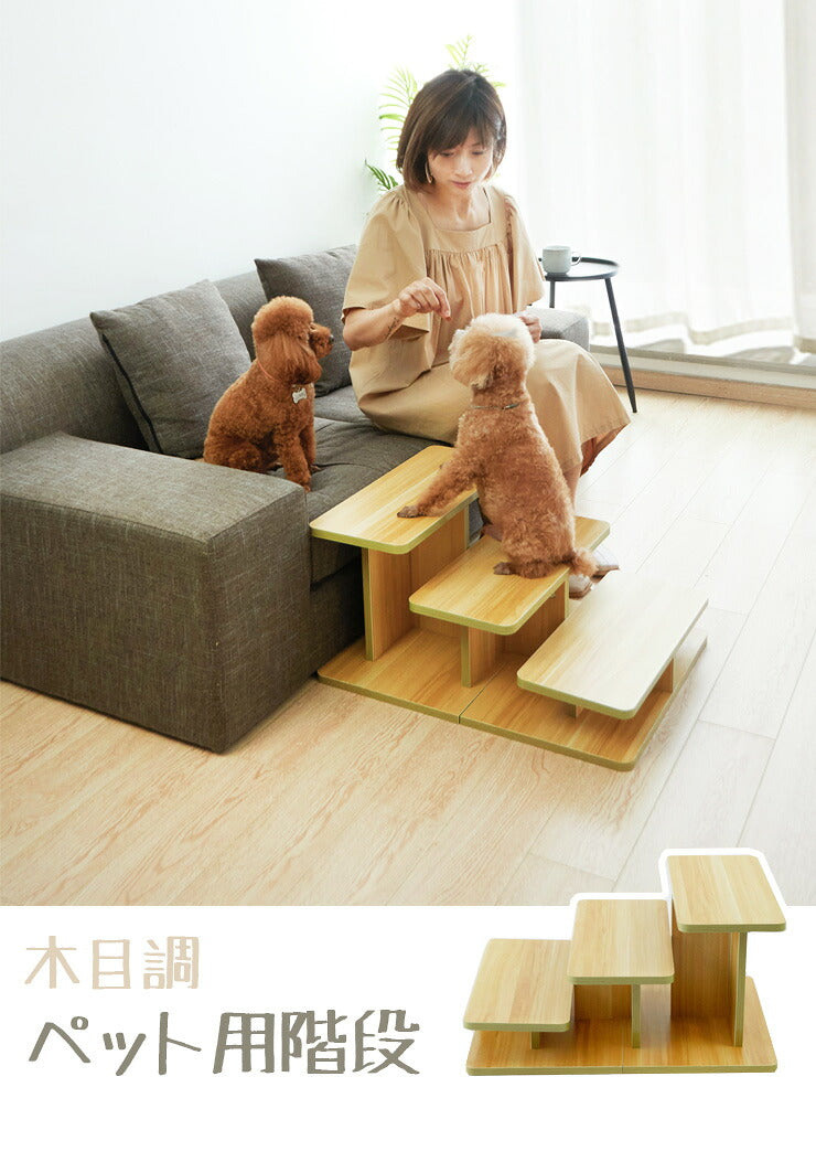 ドッグステップ 3段 木目調 滑り止めマット付き 幅46cm 木製 おしゃれ ペットスロープ 階段 犬 ステップ ペット用 ペット用階段 踏み台 ペットステップ ペット スロープ 段差 小型犬 猫 老犬 高齢犬 子犬 シニア犬 ペット用品