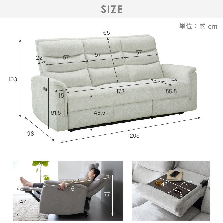 電動リクライニングソファー ヘッドリクライニング USB TYPE-C USBポータ リクライニングソファー リクライニングソファ 可動式 ヘッドレスト フットレスト 三人掛け 3人がけ 3人用