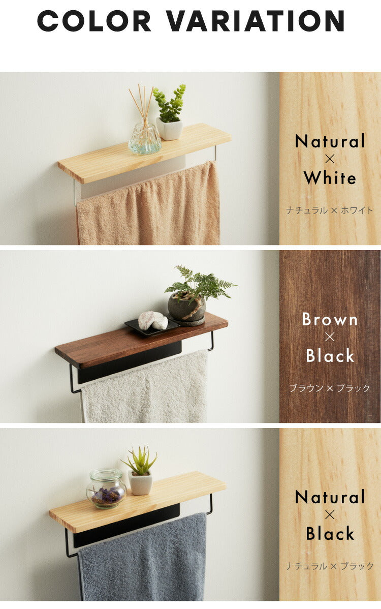 タオルハンガー 洗面所 天然木 スチール 40×11×10cm 木製 おしゃれ 一人暮らし シンプル ナチュラル 北欧 タオル掛け タオルラック タオル干し トイレ 風呂 棚 賃貸 インテリア 新生活 DIY 収納 壁