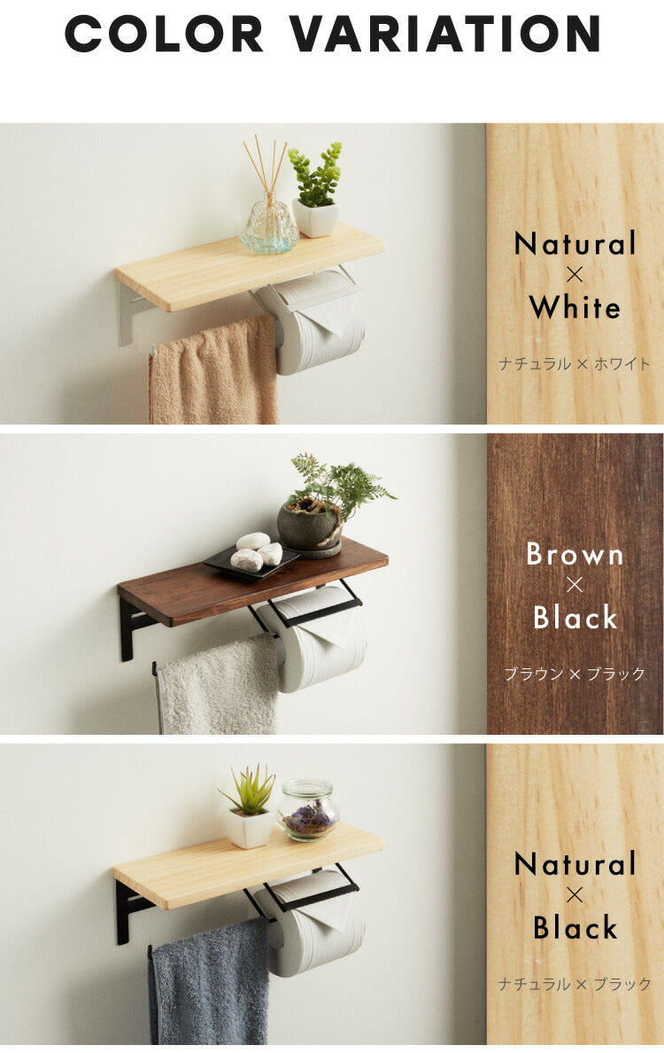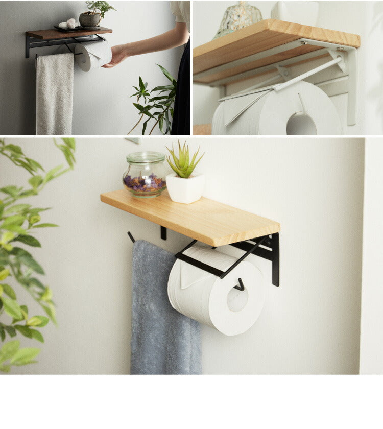 ・パイン材天板と、スチールフレームのデザインがおしゃれなトイレットペーパーホルダー