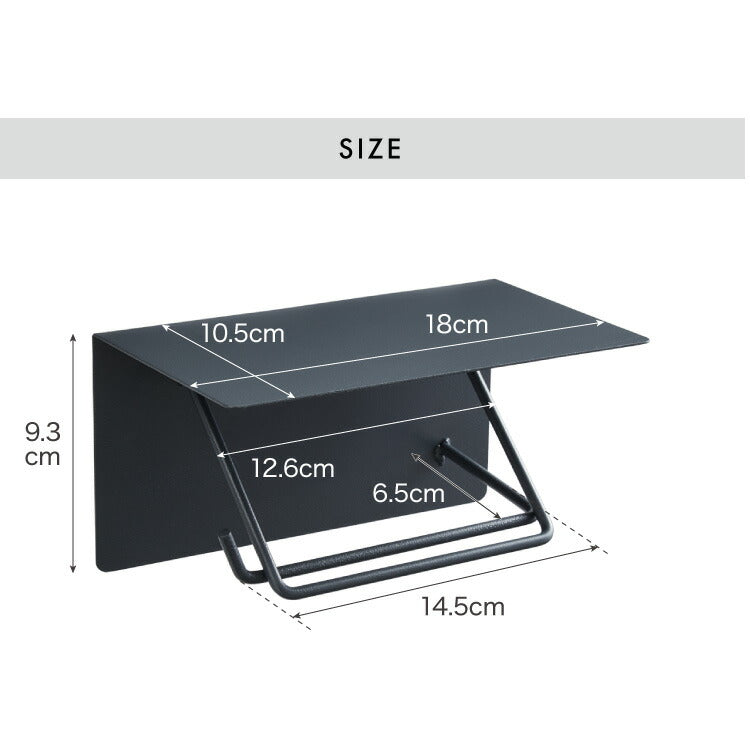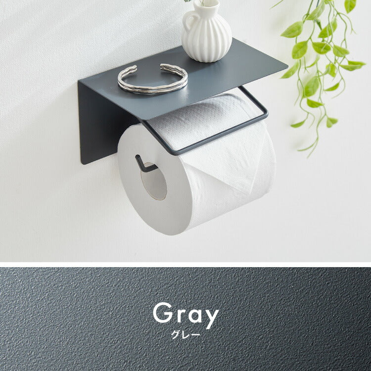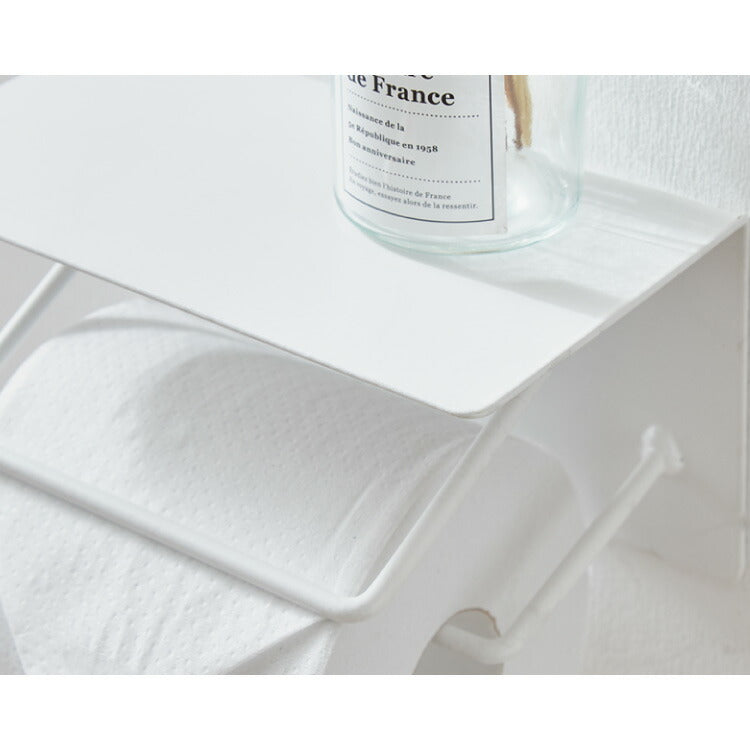 トイレットペーパーホルダー シングルタイプ 天板 オールスチール スチール 耐荷重5kg 棚付き 飾り棚 おしゃれ モダン トイレ 収納 賃貸 トイレ収納 トイレ用品