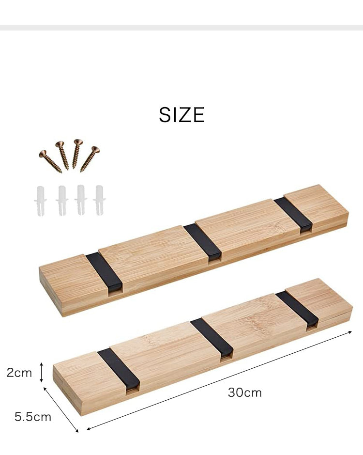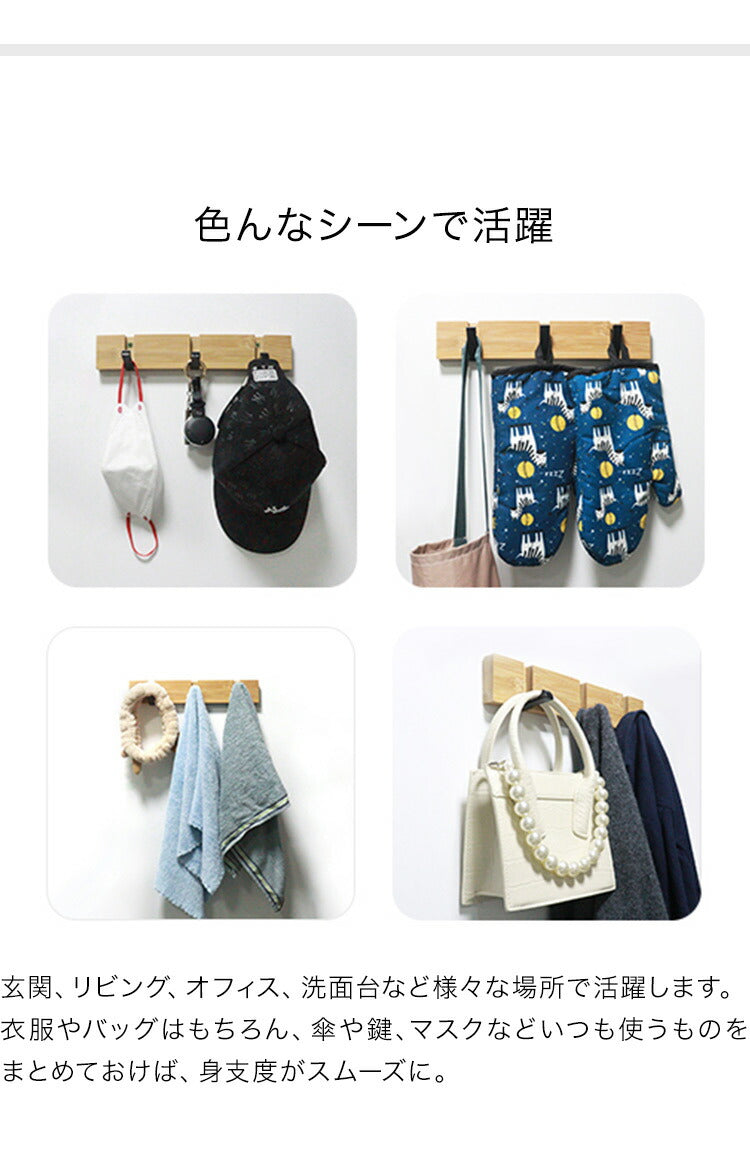 ウォールハンガー おしゃれ 3連フック 2本セット 90度回転 幅30cm 壁 竹製 収納フック 化合式 天然木 アルミ合金 壁掛け 北欧 シンプル ナチュラル 玄関 オフィス コンパクト 壁掛けフック コート掛け スーツ掛け 傘掛け