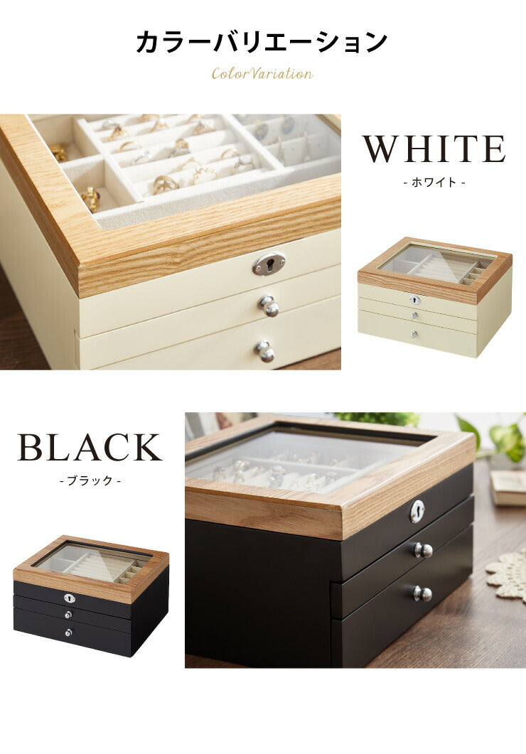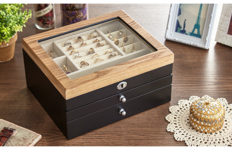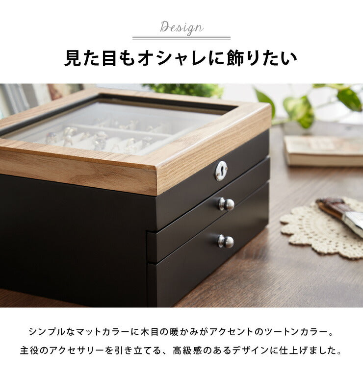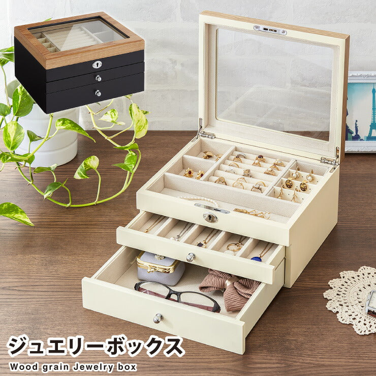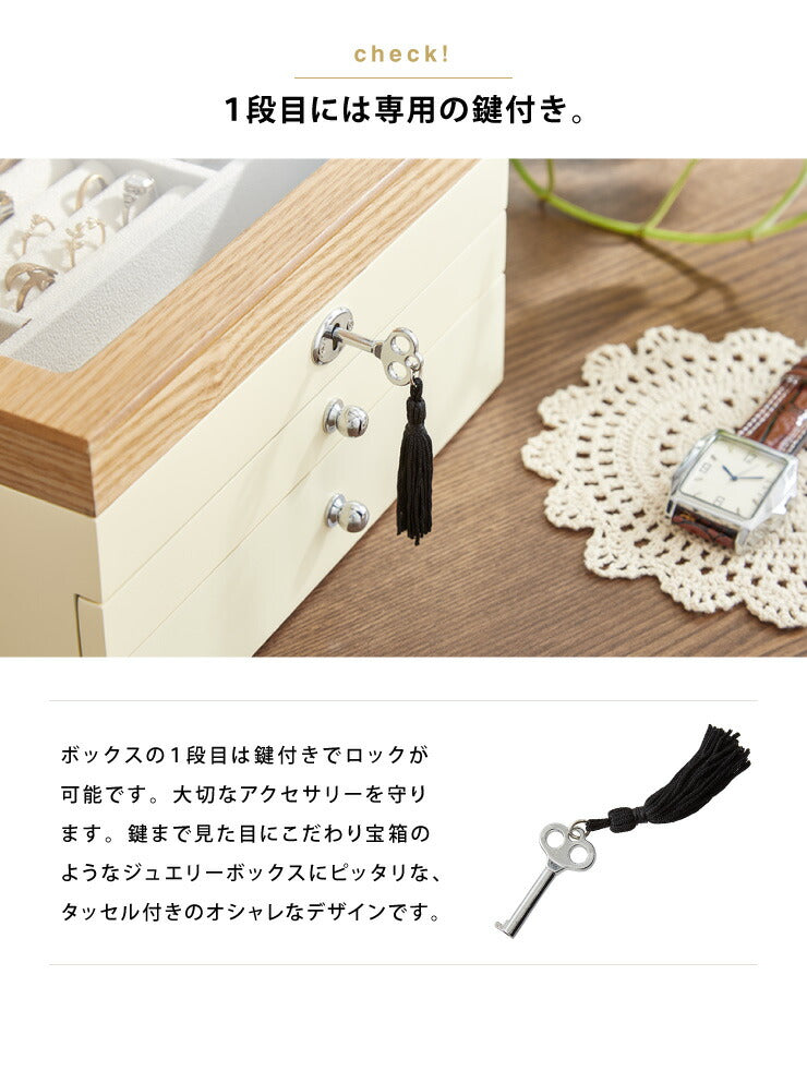 ジュエリーボックス アクセサリー 収納 木目 大容量 3段 アクセサリーケース 韓国 韓国インテリア ボックス ジュエリー 収納 可愛い おしゃれ 指輪 宝箱 鍵付き ネックレス ガラス ピアス プレゼント