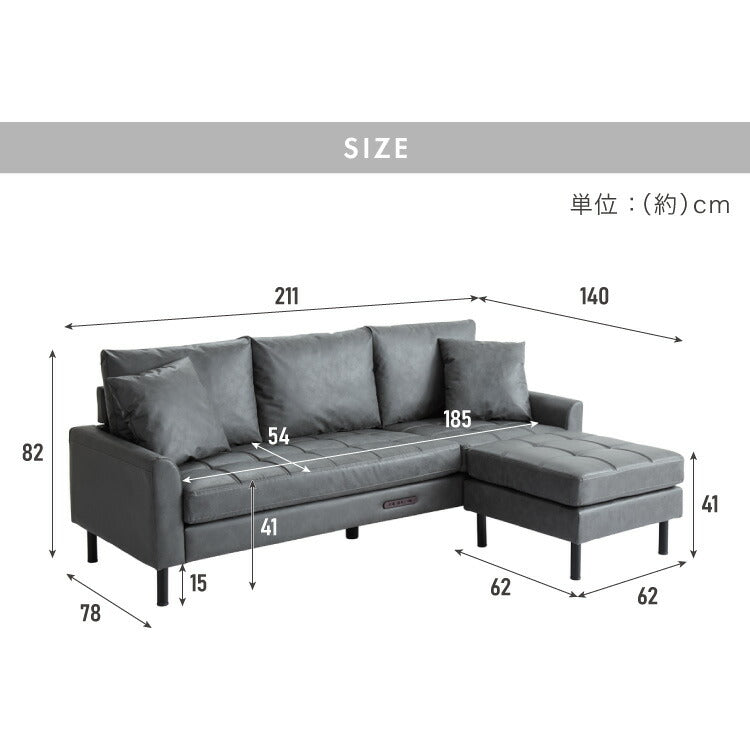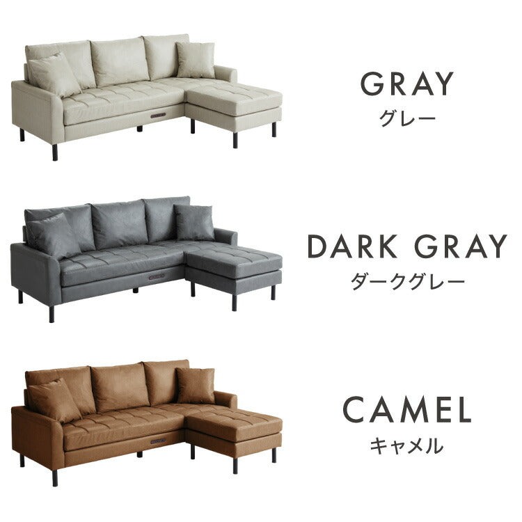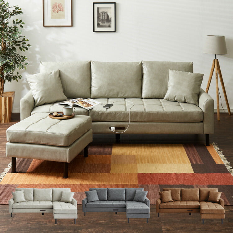 ソファ カウチソファ コンセント USB 充電 3人掛け L字型 あぐら ファブリックレザー 幅210 カウチ 組合せ ヴィンテージ 家族 リビング 革風 ルンバ お掃除 オットマン ロータイプ おしゃれ 座り心地