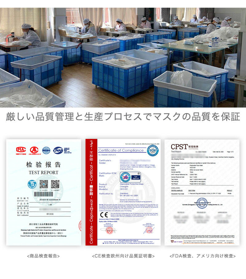 厳しい品質管理と生産プロセス、マスクの品質を保証