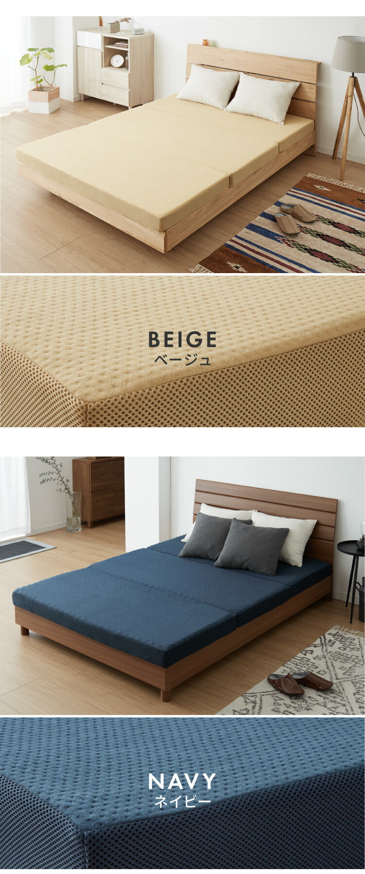 マットレスカバー 10cm 三つ折り セミシングル シングル 洗える リバーシブル メッシュ パイル ホワイト ブラウン ブラック ベージュ ネイビー グレー シンプル マットレスシーツ カバー シーツ ボックスシーツ コの字ファスナー