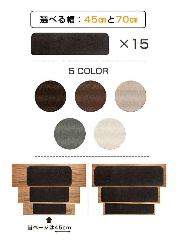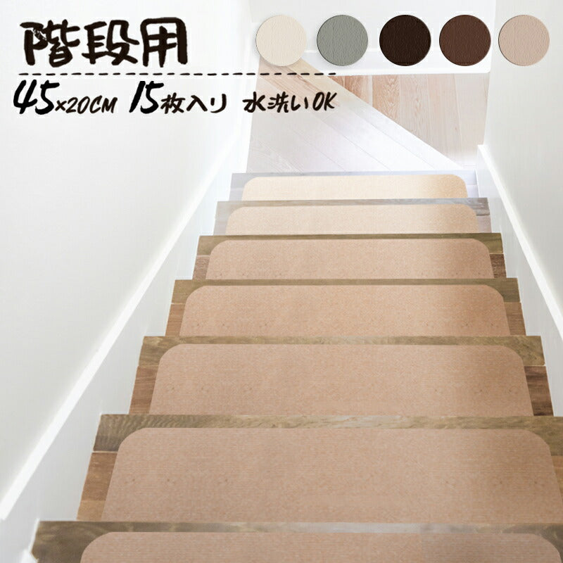 滑り止めマット 階段マット 15枚入り 滑り止め付き階段マット 45×20cm 洗える 吸着 防音 冷え対策 転倒防止 キズ防止 ケガ防止に 階段 ペット 室内用 ウォッシャブル 階段用 すべり止め カーペット シート ベビー
