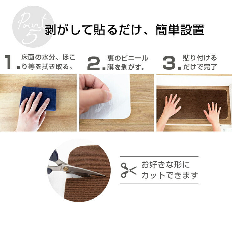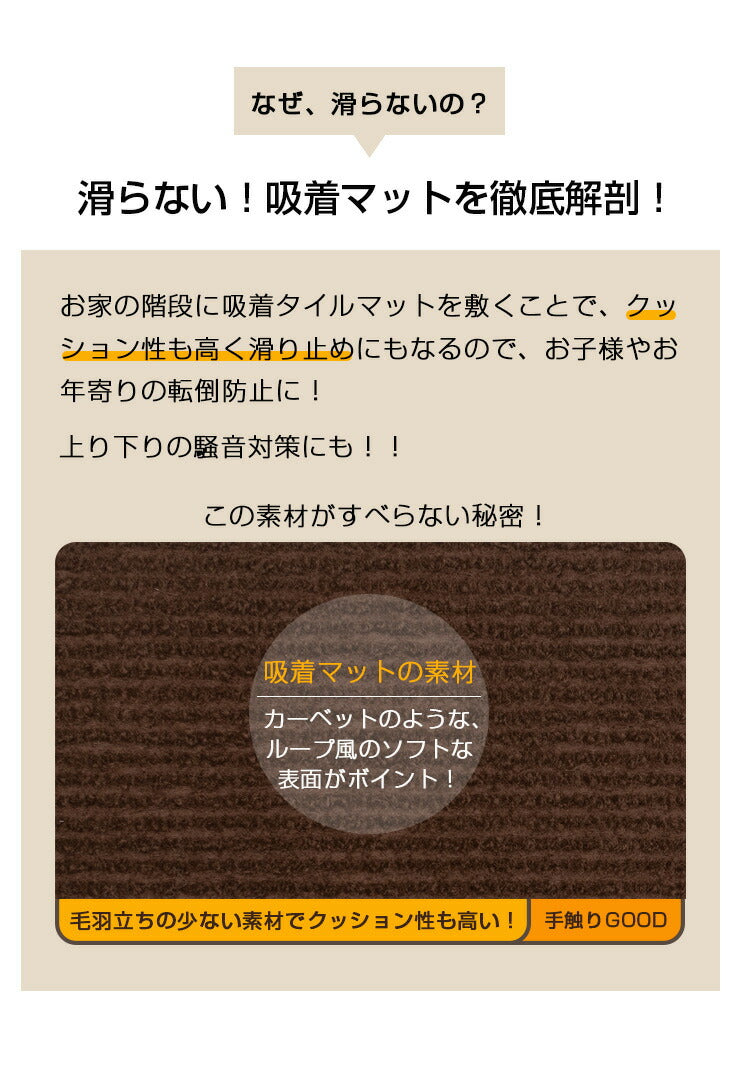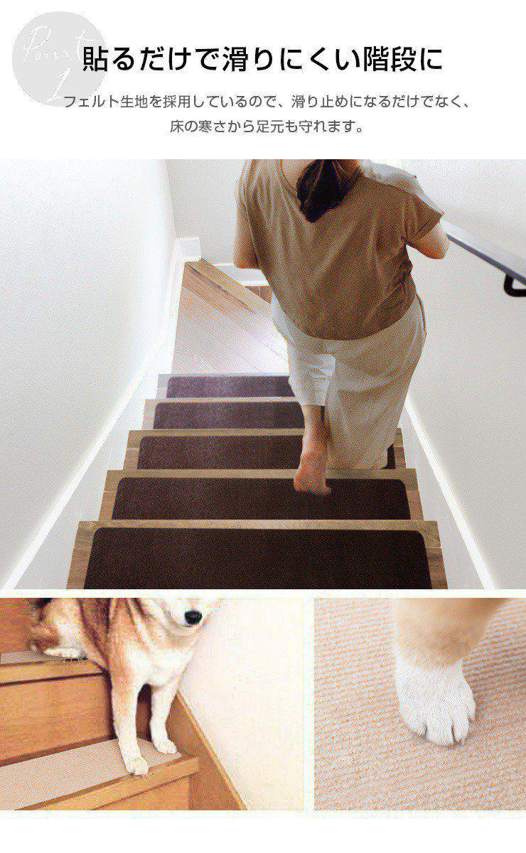 ・フェルト生地を採用した、貼るだけで滑りにくくなる階段マット