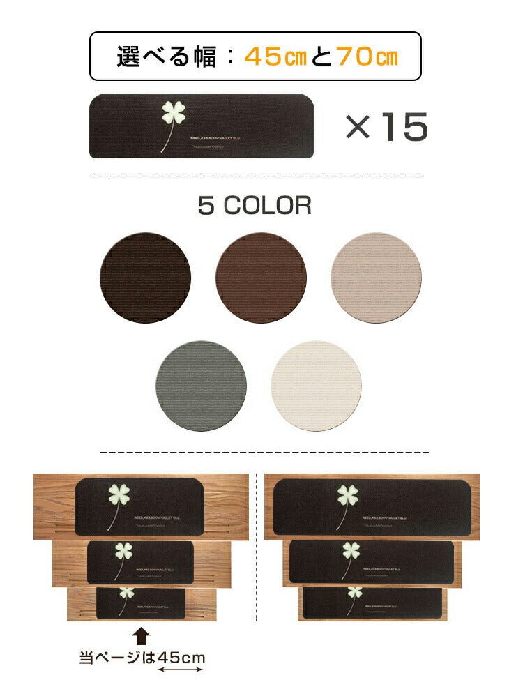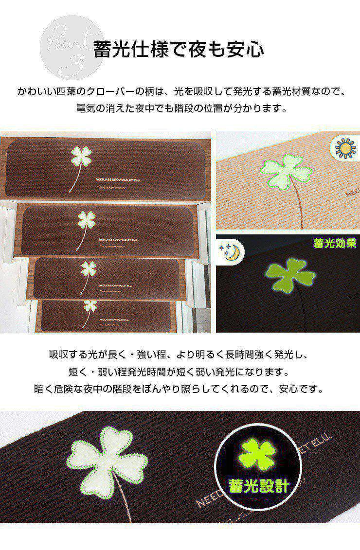 階段 滑り止めマット 幅45cm 15枚セット 蓄光 吸着 滑り止め 防音 夜光 傷防止 簡単設置 洗える 水洗い 転倒防止 冷え対策 ケガ防止 安全 騒音対策 ペット かわいい 階段マット 階段用マット 蓄光マット
