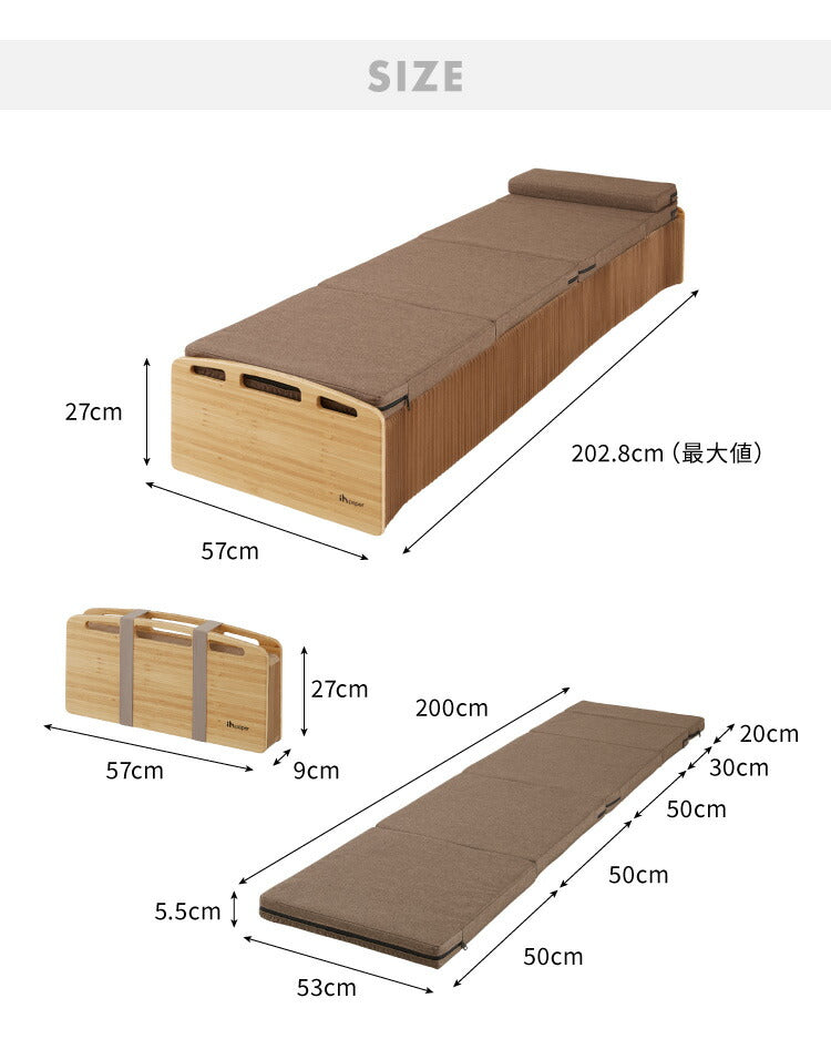 ペーパーベッド、幅57cm、折りたたみ式、マットレスセット、伸縮、天然素材使用、クラフト紙、ハトロン紙、紙製、紙製ベッド、竹板、竹素材、高耐荷重、収納バンド付、生活防水、ごろ寝マット、ごろ寝サイズ、スモールセミシングル、ハーフサイズ、来客用ベッド、折りたたみベッド、紙製ベッド、簡易ベッド、ハニカム構造、蜂の巣構造