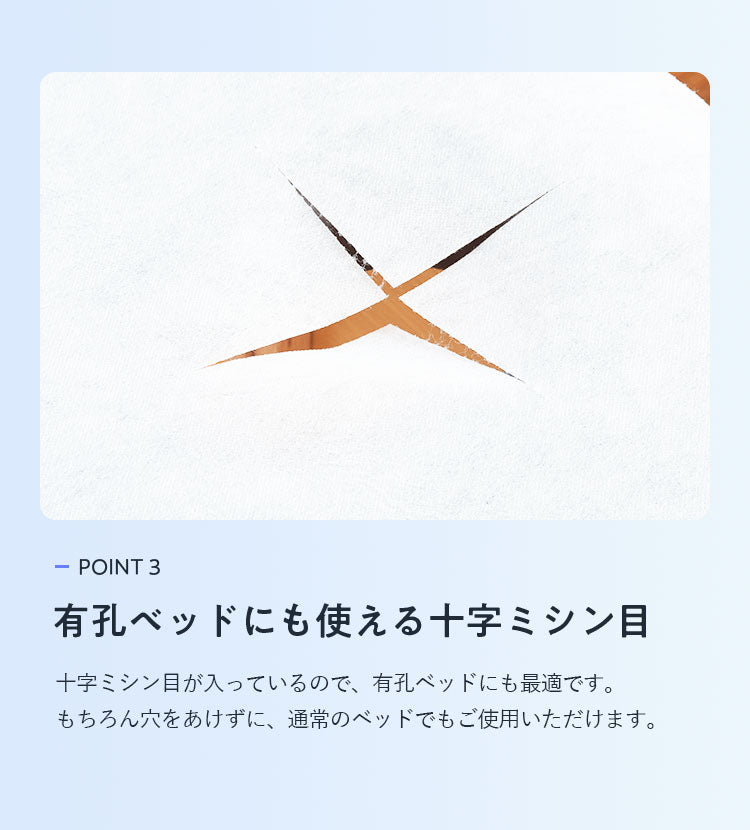 ・十字ミシン目入りなので、有孔ベッドでもご使用いただけます。