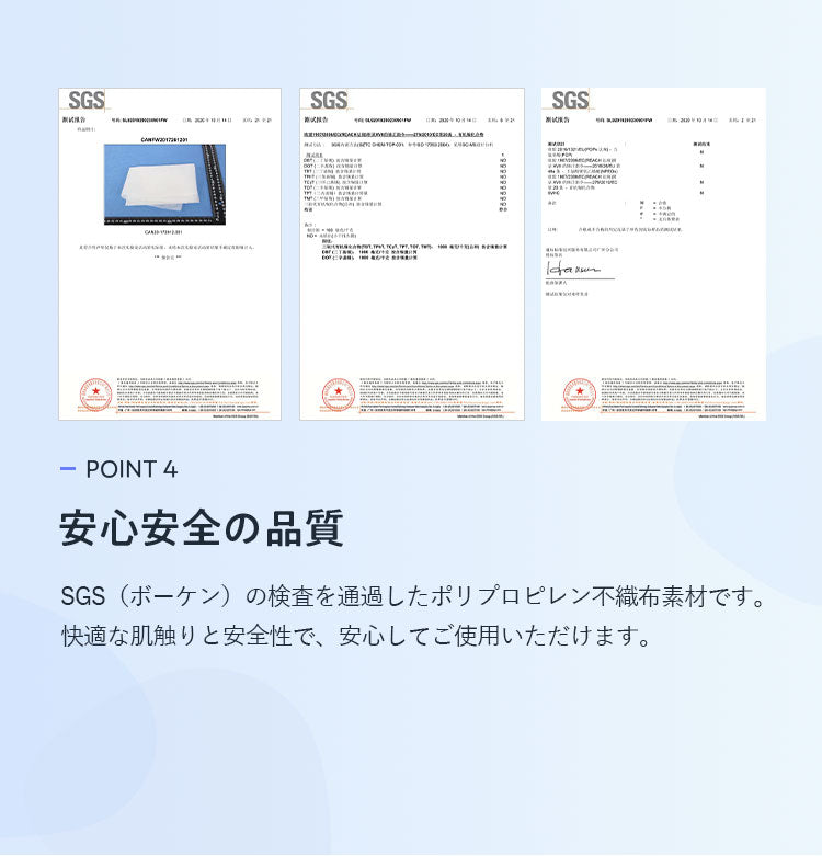 ・SGSの検査を通過した安心のポリプロピレン不織布素材です。