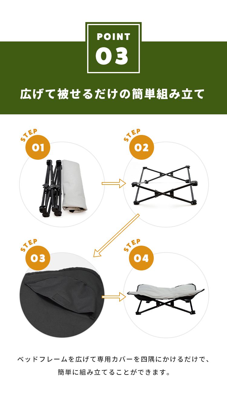 ・地面から離れることで湿度や熱を感じにくく快適に過ごせる犬用コット