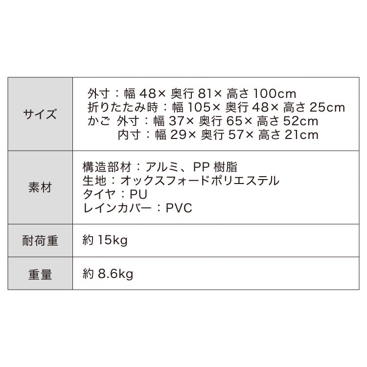 かご 外寸:幅37cm×奥行65cm×高さ52cm